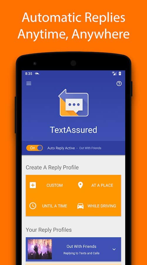 Приложение TextAssured - Auto Reply пригодится тем, кто не хочет терять времени на принятие голосовых входящих вызовов и текстовых СМС. Запускайте программу, и она будет работать автоматически на вашем устройстве.