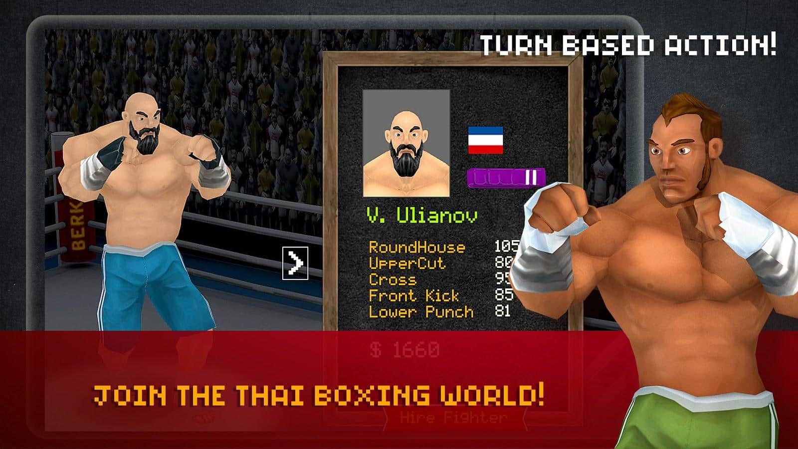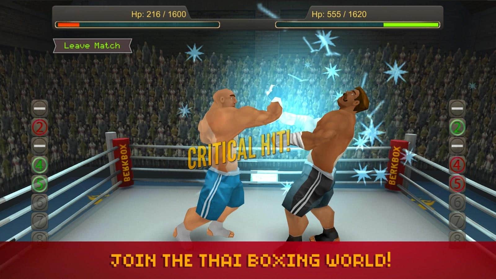 Thai Boxing League – спортивная игра в которой вы будете участвовать в турнире по тайскому боксу. Каждый боец в этой игре имеет уникальные параметры и внешний вид, выбирайте среди многочисленных бойцов своего героя и вступайте в поединки на арене, проводя боксера к победе. Выстраивайте эффективные приемы, в виде блоков и ударов и наносите оппоненту серьёзные повреждения, чтобы получить максимум результата и выиграть бой. Работайте руками и ногами, последовательно нанося удары и попробуйте выиграть чемпионат мира, среди самых сильных и опытных соперников.