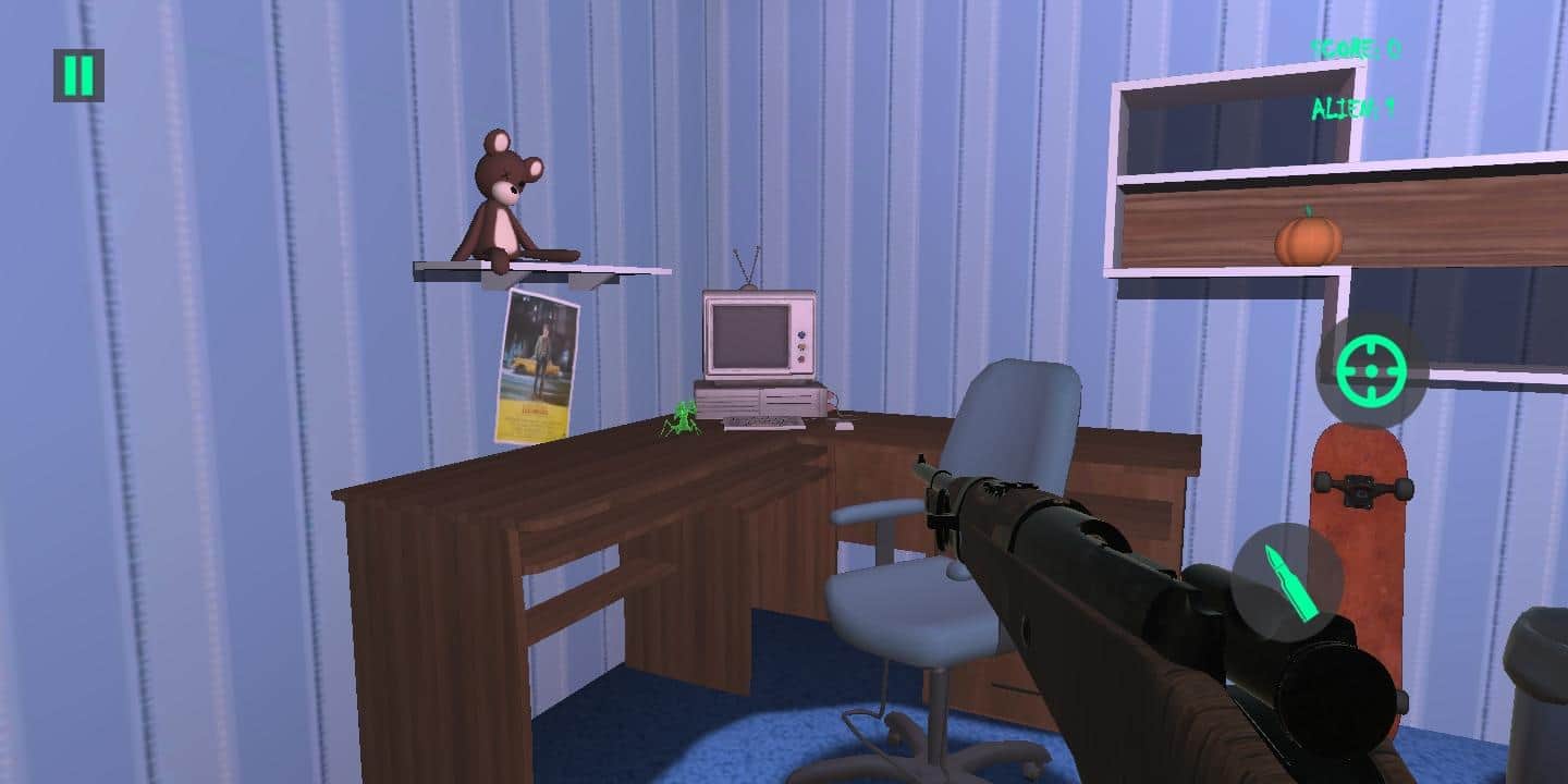 The Alien Within - В последнее время вы заметили, что в вашей комнате происходит что-то довольно странное, и естественно вы этому совсем не рады. Проснувшись однажды утром, вы обнаружили появление совершенно новых предметов на полках и других доступных местах, поэтому теперь решительно хотите найти истинную причину в мистическом явлении и избавиться от нее. Спустя некоторое время обнаружилось, что это рук инопланетян, которые маскируются в виде различных предметов. Отыщите ненастоящие объекты и уничтожьте их, таким образом вы избавитесь от незваных гостей.