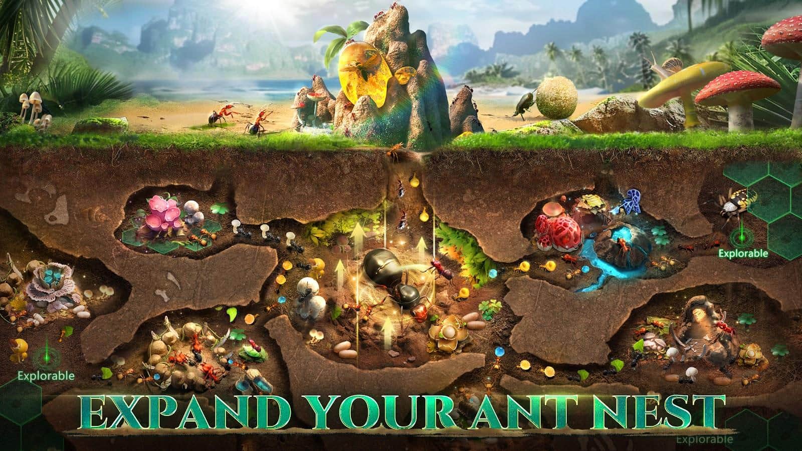 Две недельки назад установил эту игру из гугл плея, реклама была заманчивой и в первые за десятилетия я на неё повёлся. В итоге это просто симулятор градостроения про муравьёв. Как по классике везде таймеры и куча ненужных вкладок с кланами, статистикой и прочим. Плюс, а точнее минус, требует постоянное подключение интернету. Ещё одно *клише* для таких игр, это долгое не пропускаемое обучение. Всё состоит из 2д спрайтов, и есть функция делающая анимации более плавными, что не заставляет ваши глаза слезиться. Возможно, скуфам которые давят диван и тупо жмут на экран, эта игра и пойдёт, но не мне.