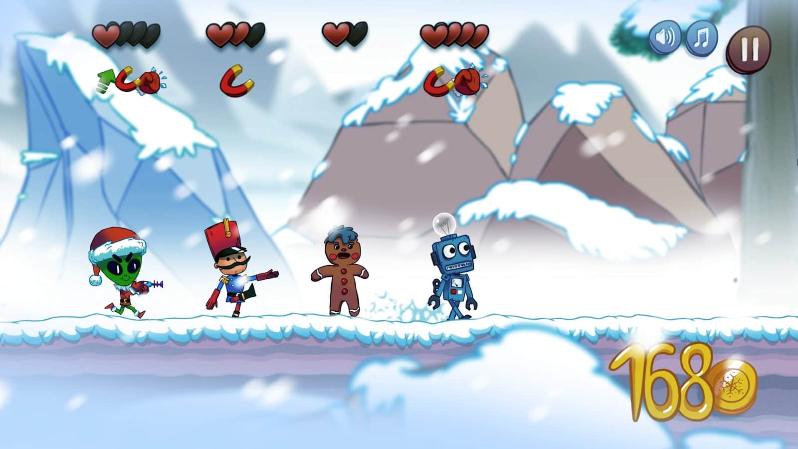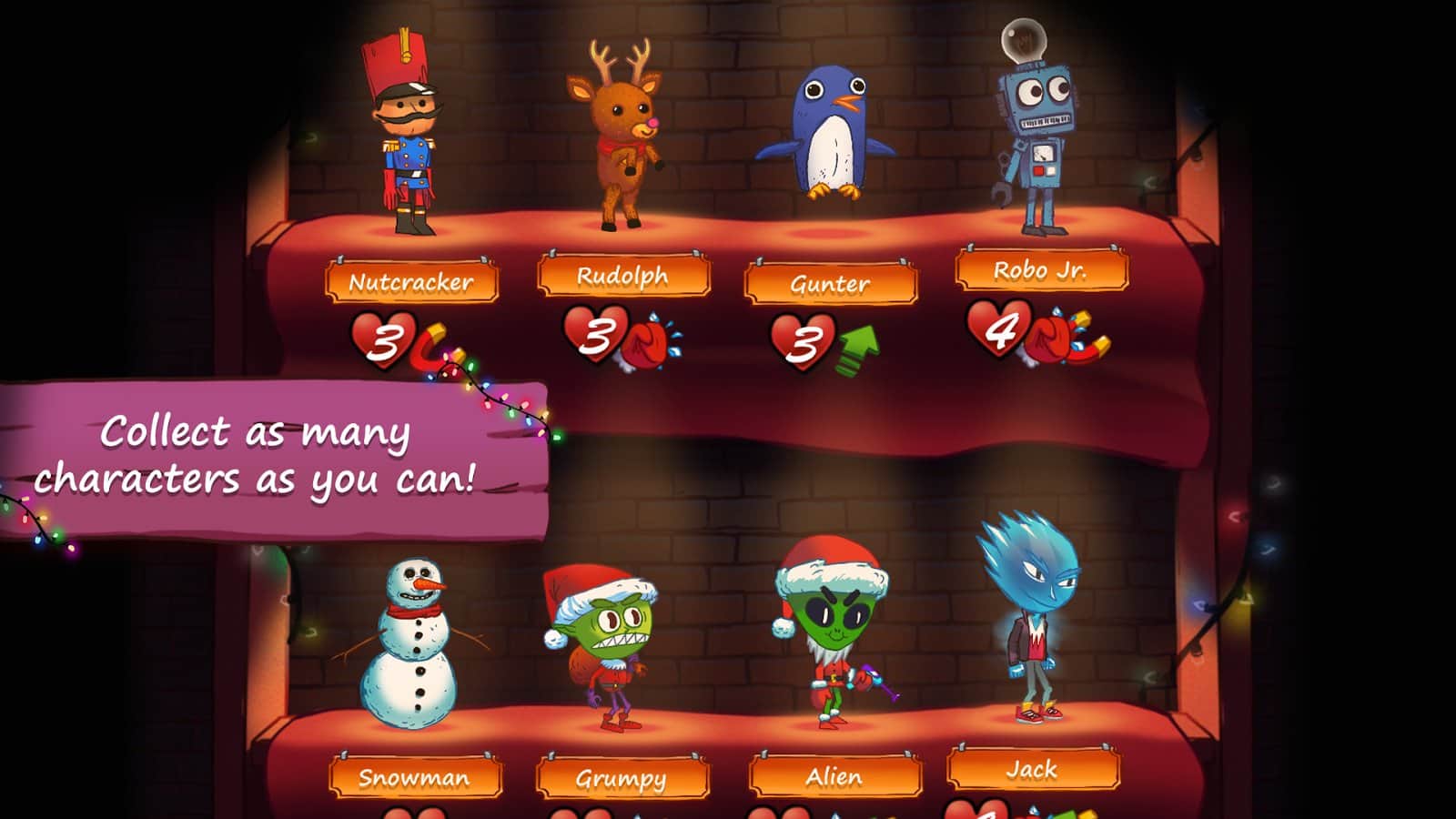 The Christmas Journey GOLD - Рождественская аркада представляющая из себя нечто среднее между горизонтальным ранером и платформером, при этом разработчики нашли довольно необычное применение этим игровым механикам. Для начала вы начнете игра в роли одного из доступных персонажей и здесь все будет предельно просто, бегите по горизонтальным локациям, преодолевая препятствия и собирая призы. Однако в последствии к вам в компанию будут добавляться все новые герои и вот тогда механика заметно усложниться, ведь управлять придется целой цепочкой. Помимо оригинального гйемплея разработчики не забыли и о отличном графическом исполнении, все локации нарисованы в ручную, а так же о Рождественском саундтреке, что в комплексе прекрасно передает атмосферу игры.