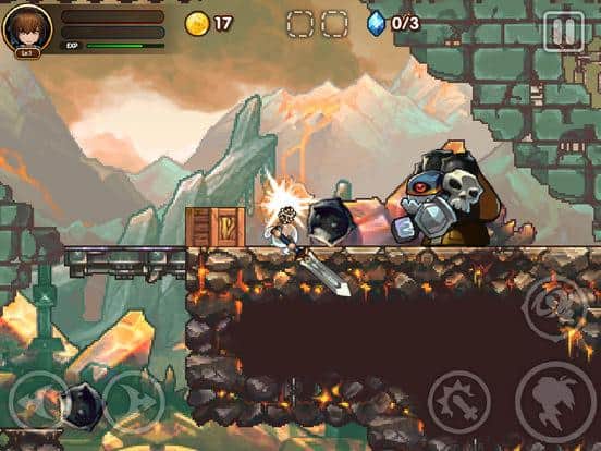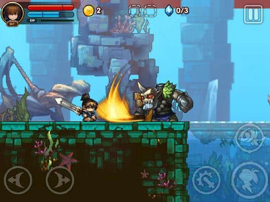 The East New World – классический платформер для IOS, где вы будете помогать главному герою мстить за смерть жены. Наш герой отправился на встречу приключений, где его ждут многочисленные враги, сильнейшие боссы и множество ловушек. Перемещайтесь по многочисленным локациям и прыгайте по платформам, преодолевайте препятствия и вступайте в схватку с монстрами. Улучшайте своего героя по мере прохождения уровней и добейтесь невероятных результатов снабжая его мощным мечем и броней. В игре вас ждут 80 неповторимых уровней, 20 видов оружия и столько же брони, а также сильные артефакты и бонусы.
