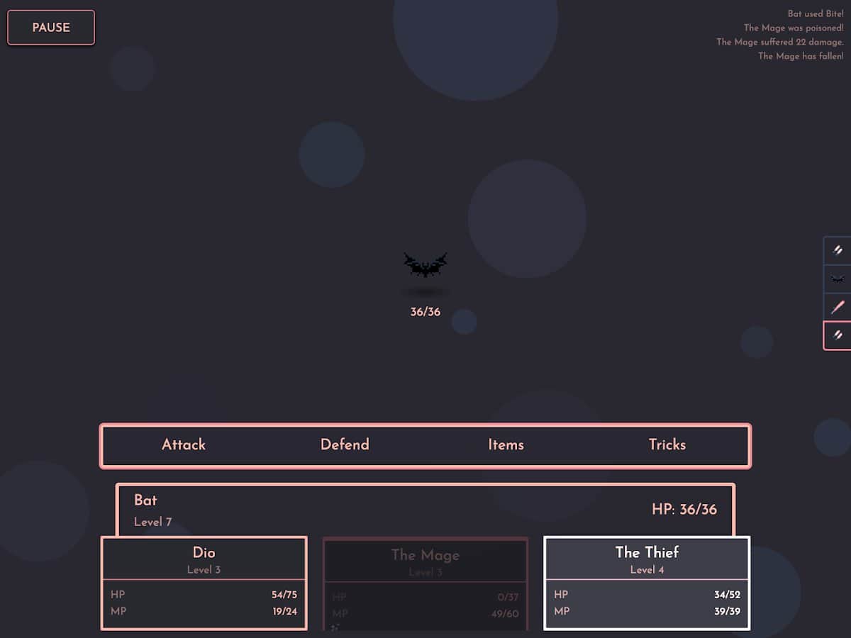 3 перса 3 акт.действия и 1 окошко для расходников. Несколько врагов на локации с разными резистами и слабостями, начиная слизнями заканчивая драконами и демонами)