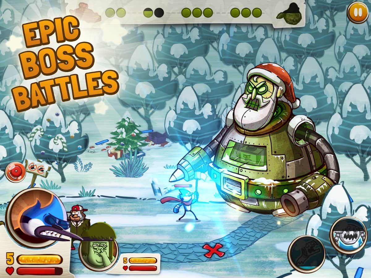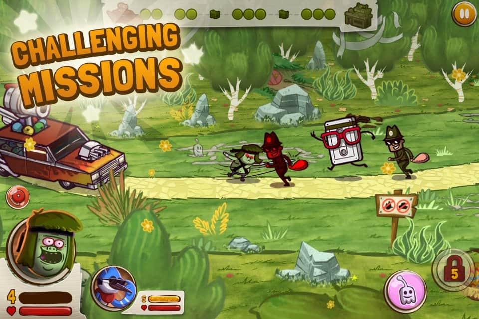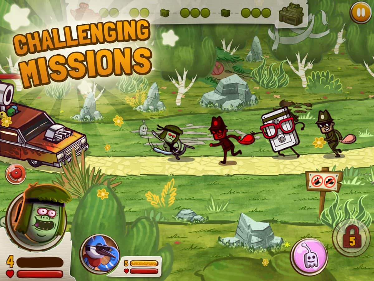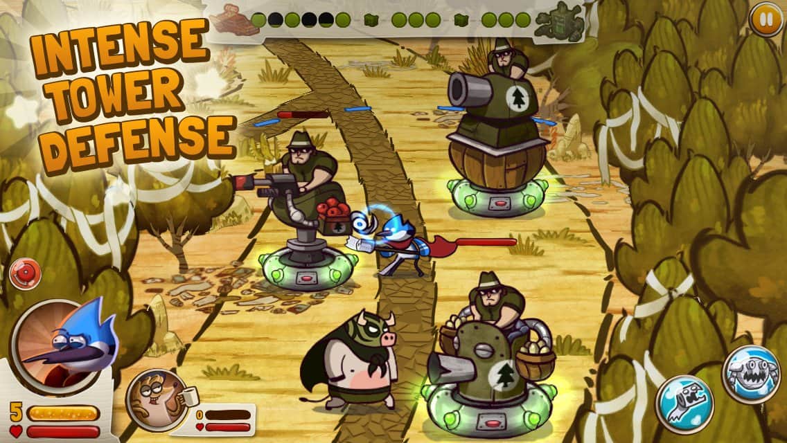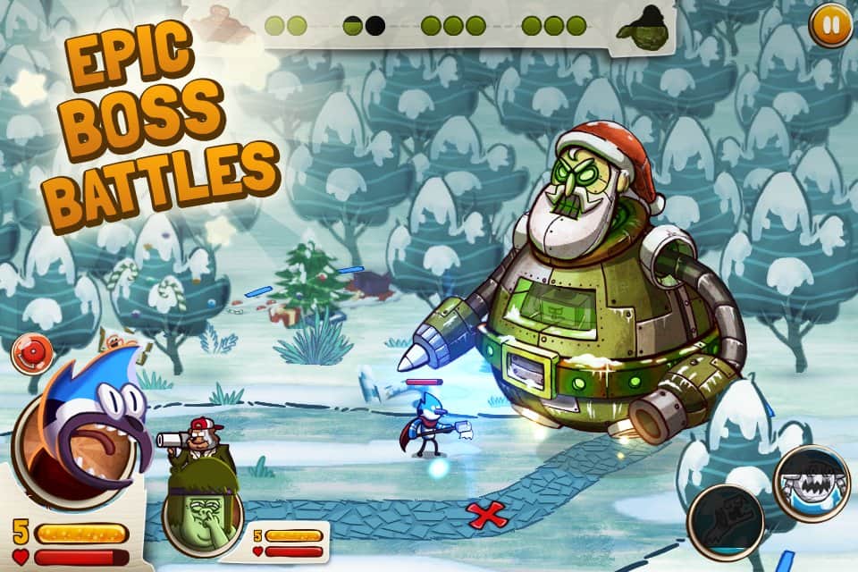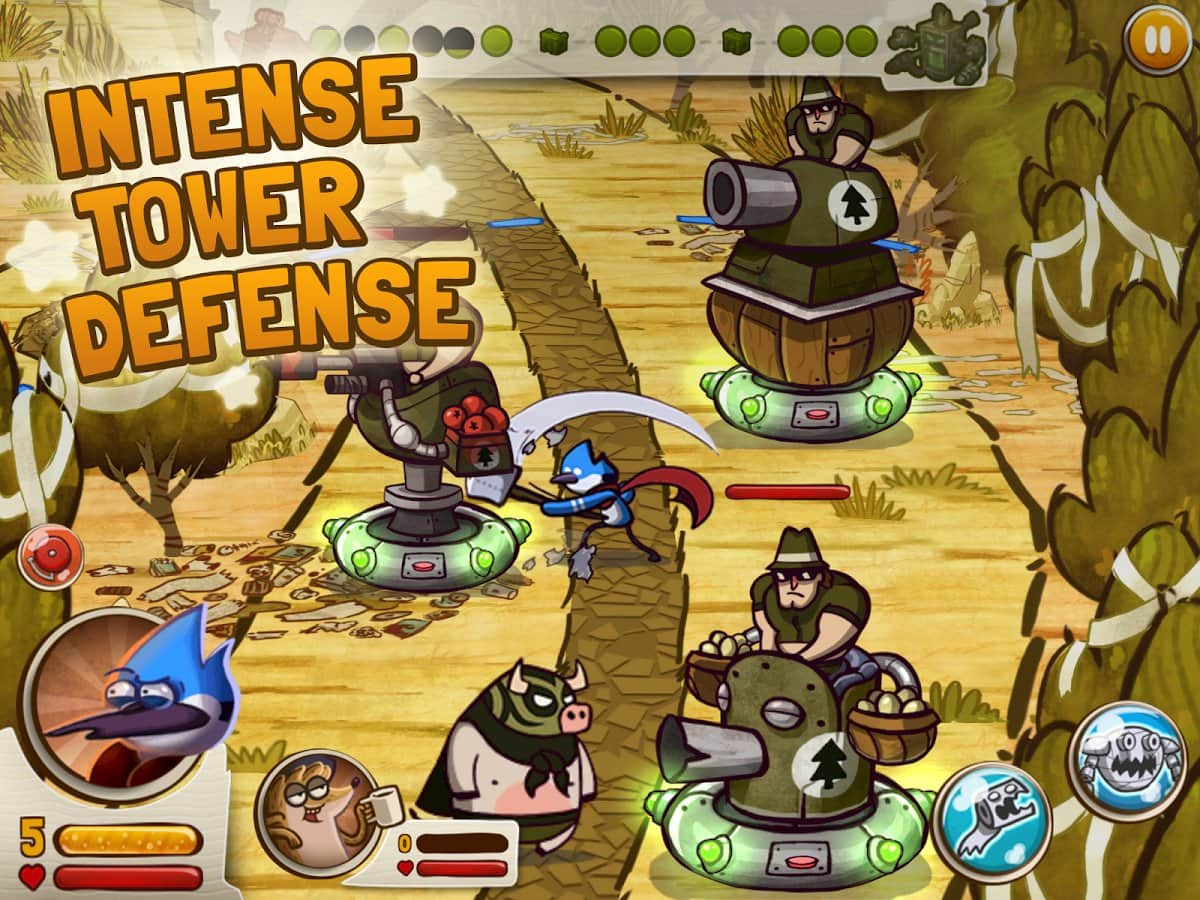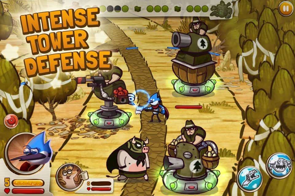 Очень короткая, прошла за 1 час. Чем то доту напомнило. Геймплей увлекательный но через время надоедает. Пройти игру 2-й раз как то нет желания. Из героев: доступно 4(!) героя,(капеец как мало) единственные нормальные персы- начальные, Мордекай и Ригби. Остальные- просто бред. Лучшая тактика- один герой бьет с расстояния, а второй рашит башни. Оценю ее в 2/5 баллов. Хорошая идея, но упустили. Четыре героя, 2-е из которых каличи это уже вверх тупизма. В общем, на один раз, не более.