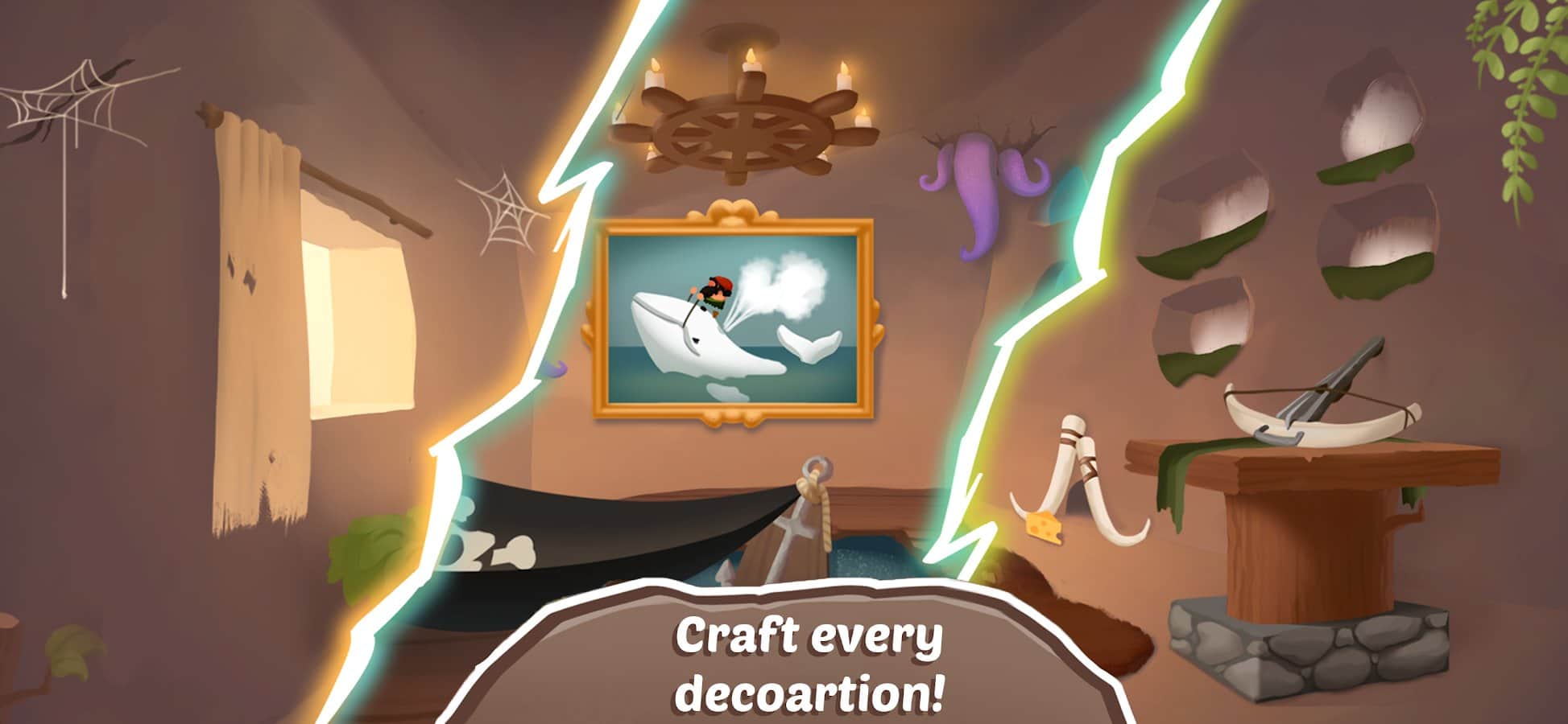 Даже присутствует небольшой, так сказать сюжет. По сути, мы живём в пещерном веке. Нам, естественно, надо кормить свою жену и своих детей, но мы так любим свой диван. Получи по башке, мы с вами идём собирать хавчик.