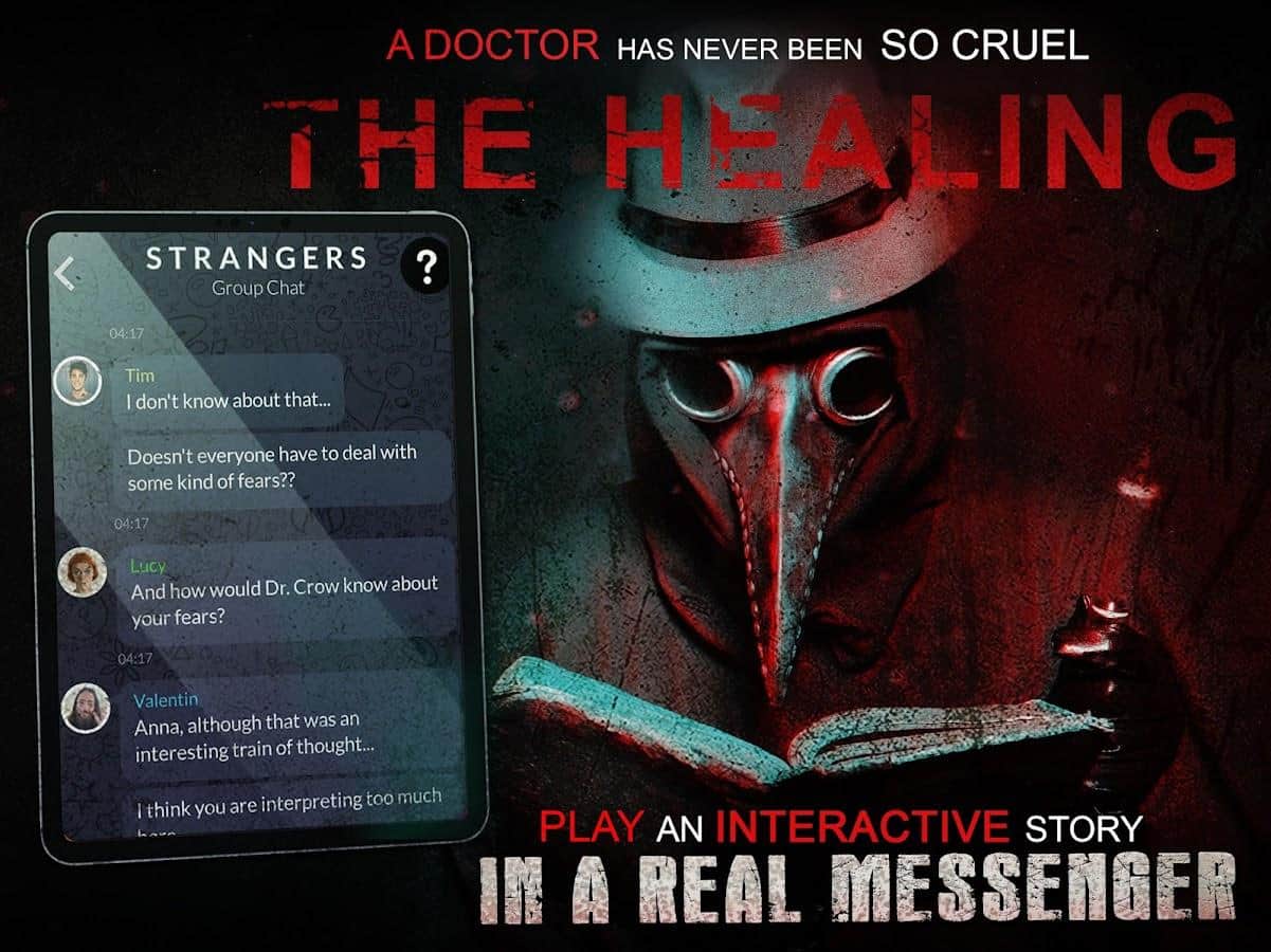 The Healing - в какой-то момент вы попадаете в групповой чат, где есть еще 7 таких же людей, которые не понимают что происходит. Вас добавил загадочный доктор Кроу в маске от чумы, но истинная его цель добавления неизвестна. Следуйте указанным правилам сумасшедшего и заранее продумывайте планы на то, как именно вам выбраться из всей этой истории. Узнайте побольше информации об остальных и о самом докторе, чтобы узнать зачем именно вас собрали в одном месте, почему вас такое количество и прочие вопросы, на которые сейчас нет ответов.