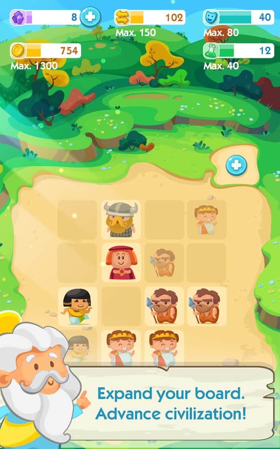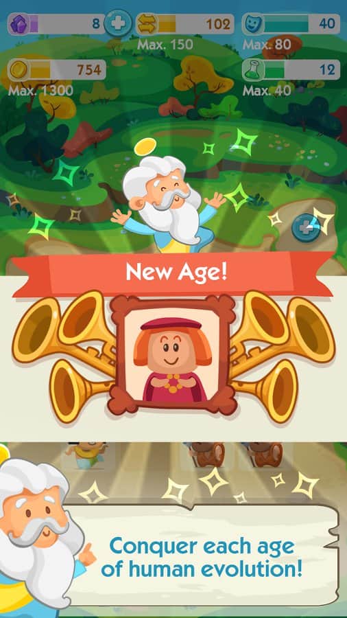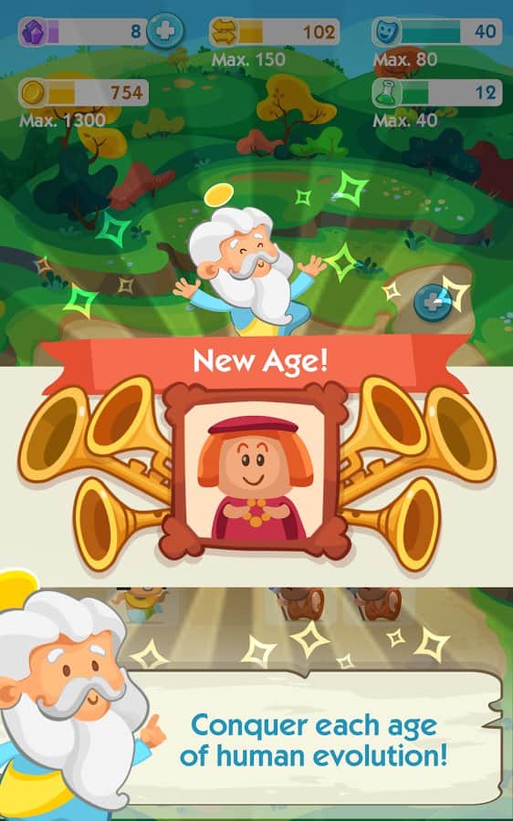 The Human Age – увлекательная головоломка на андроид, где вы будете выступать в роли бога. В этой игре перед вами откроется поле, которое поделено на квадраты в каждом квадрате будут появляться люди из разных эпох, вашей задачей объединять одинаковых из них и создавать новые эпохи. Применяйте всю свою наблюдательность и логику, чтобы пройти как можно дальше в этой игре и создать современного человека, который относиться к эпохе наших дней. Перемещайте людей по игровому полю и помогайте им пройти нелегкий путь от каменного века до современного человека. Также этой игре будут появляться различные чудеса света, такие как египетские пирамиды, соберите свою коллекцию и станьте лучшим игроком в этой игре.