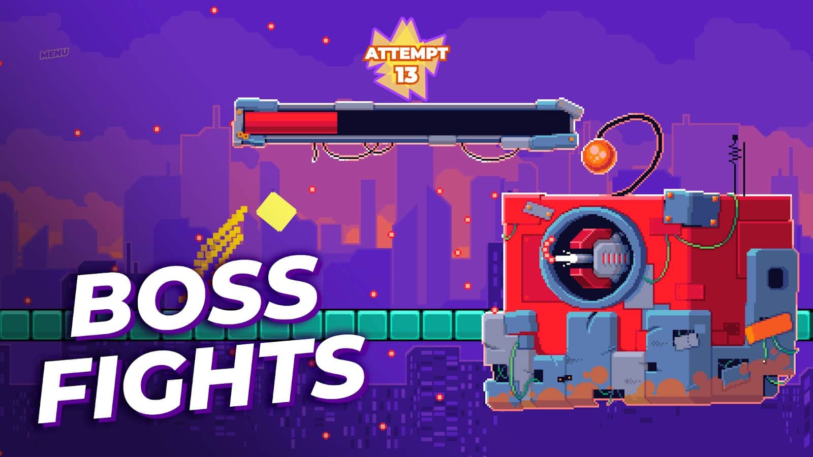 The Impossible Game 2 - Нажимайте на экран множество раз, чтобы пройти все испытания и преодолеть любые препятствия на своем пути! Старайтесь ни в коем случае не попадаться на шипы и другие ловушки, используйте специальные способности при необходимости, а также создавайте собственные уровни благодаря удобному редактору. Вам придется пройти больше 20 уровней, разблокировать новые функции, пройти бонусные уровни и сражаться в насыщенных битвах против различных боссов. Участвуйте в доступных битвах и всегда побеждайте, несмотря ни на что!