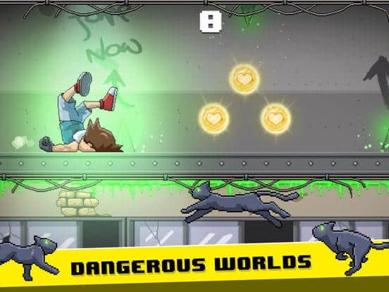 The Last Runner – увлекательный раннер для IOS, где вы будете бегать по заброшенному городу. В этой игре вы возьмете под свой контроль отважного бегуна Рэйя который при всем владеет азами паркура. Наш герой 18 лет назад родился в этом городе, но теперь город является заброшенным, и его населяют зараженные кошки и ядовитые водоемы. Наш герой отважный авантюрист который пойдет на все чтобы найти сокровища города. Бегайте, прыгайте и обходите многочисленные преграды на пути и старайтесь не упасть в воду. Добивайтесь отличных результатов и соревнуйтесь с другими игроками.