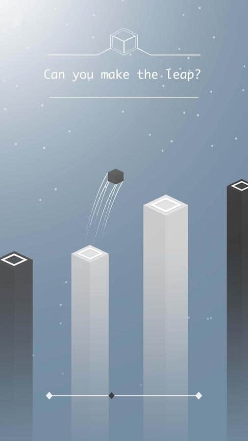 The Leap - увлекательная аркадная игра в которой вам предстоит управляя элементом, при этом необходимо совершать прыжки по колоннам разной площади и высоты. Управляя прыжками вы будете при помощи изменения траектории которая выполнена в графическом стиле. Главная цель игры преодолеть как можно больше колонн, а затем можно похвастаться своими рекордами перед друзьями.