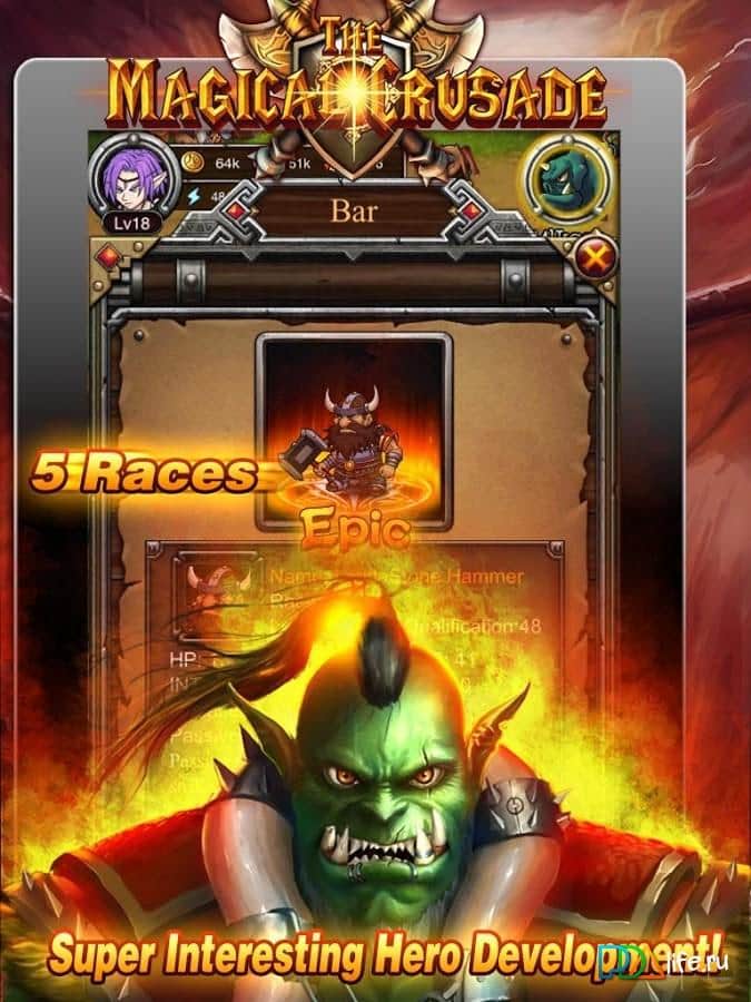 The Magical Crusade - игра на аndroid, в которой вы отправитесь в захватывающее приключение вместе со своим героем. Фантастичная пошаговая стратегия с большим игровым миром для исследования, и богатой историей. Вас ждут большое количество навыков, оружия и рас где вы сможете сформировать свою команду и сражаться против других команд со всего мира.