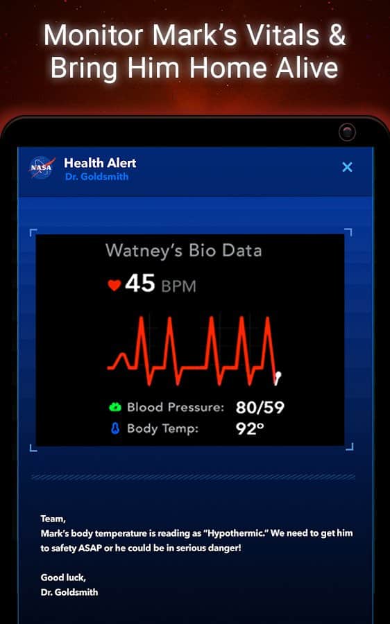 Ну что,будем двоих космонавтов спасать.Тейлора и Марка Уотни. Марсианин и lifeLine самые лучшие квестовые игрушки.)