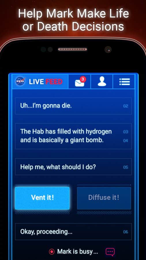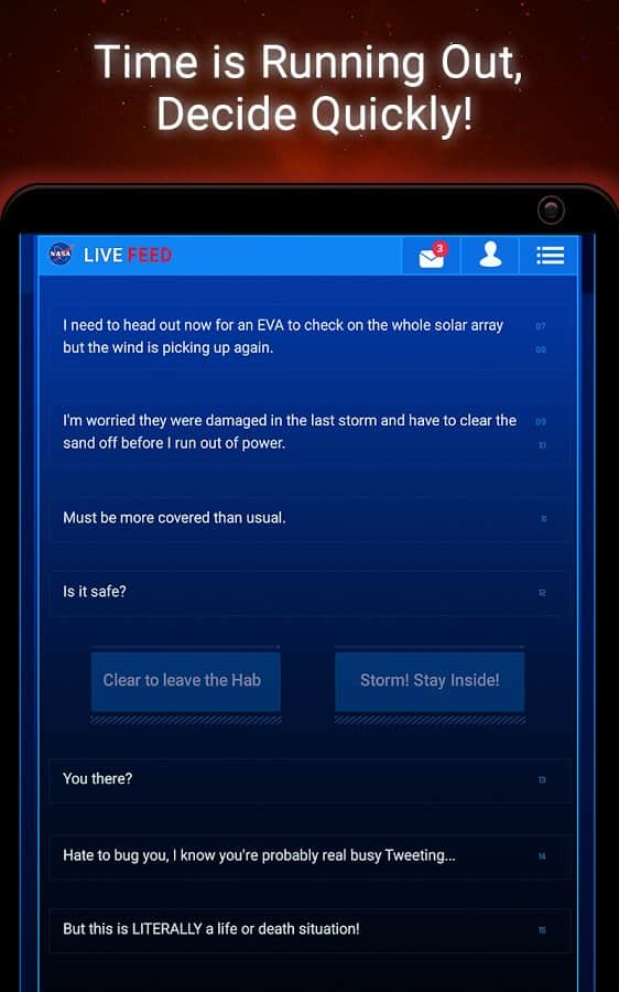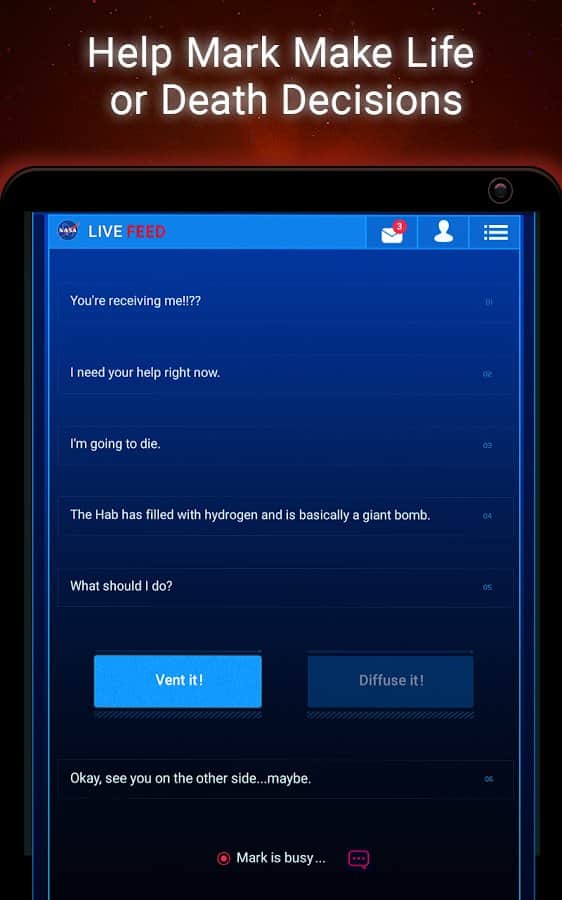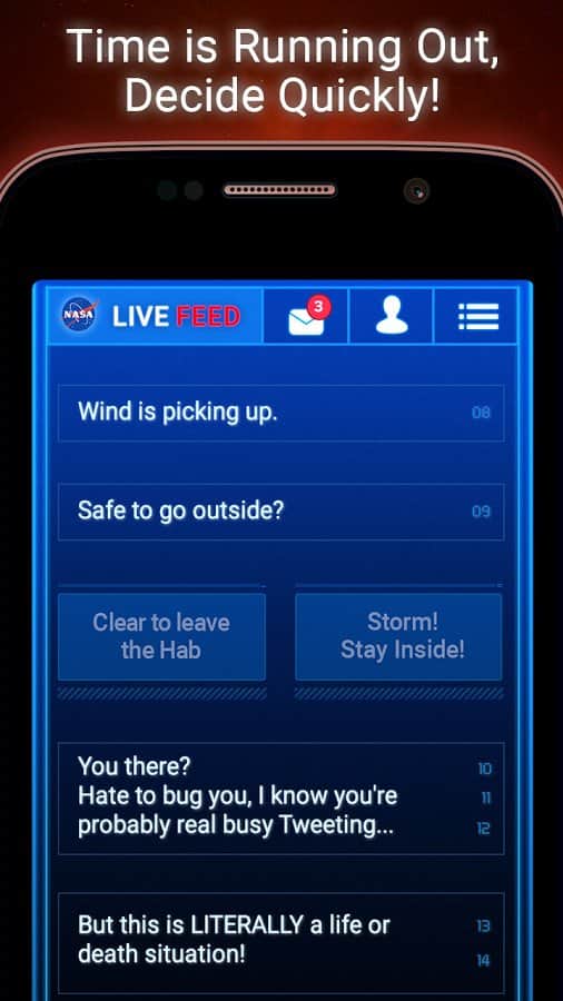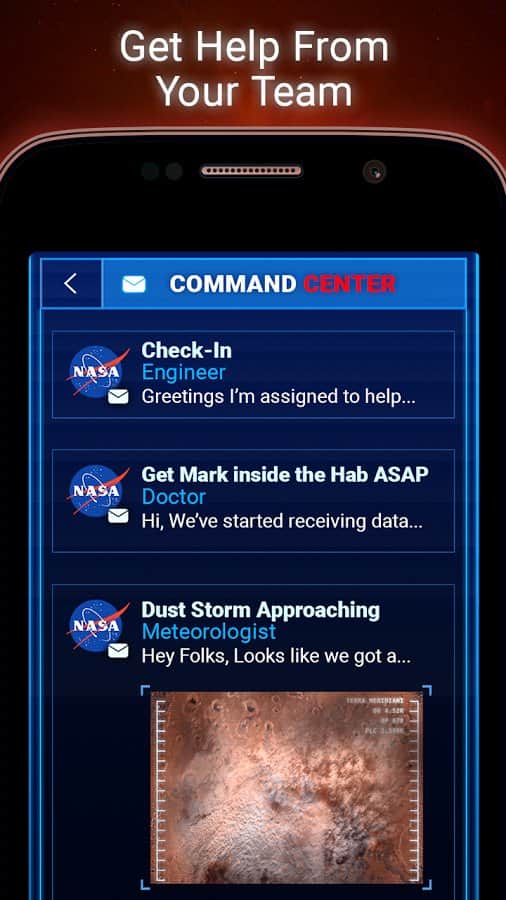 The Martian: Official Game - Эта игра является официальной игрой по голливудскому фильму "Марсианен". В игре вам предлагают стать самым настоящим специалистом NASA. Каким-то образом вам получилось связаться с одним из астронавтов, его группа исследовала поверхность Марса, и за некоторых обстоятельств он остался сам на огромной безлюдной планете. Именно вы являетесь надеждой на спасения этого астронавта, вам придется принимать нелегкие решения. Сможите ли вы помочь ему и вернуть домой целого и невридимого?