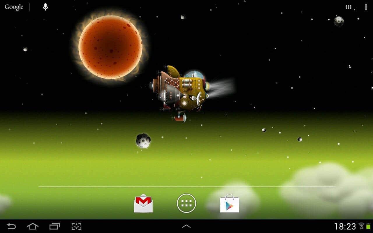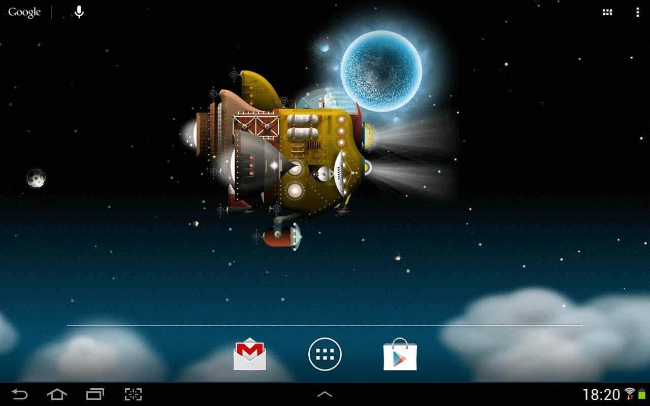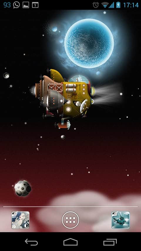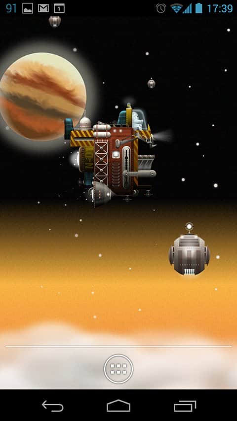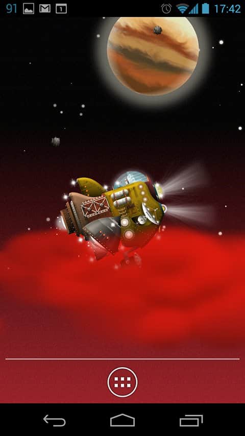 The Nebulander – совершите невероятный космический полет на фантастическом корабле с помощью живых обоев для андроид устройств от разработчика Gauli. Вам доступны: управление кораблем (вверх, вниз), скорость полета (увеличение или уменьшение), выброс космического мусора. Приятного космического путешествия!