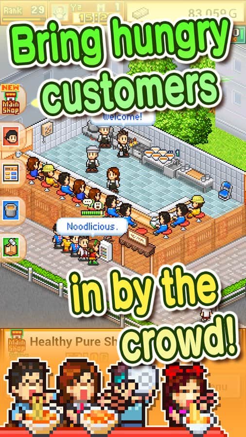 The Ramen Sensei – симулятор от разработчиков Kairosoft игр на андроид, где вам предстоит создать сеть ресторанов по приготовлению рамена. Это суп с пшеничной лапшой очень популярный в Японии. И вам предстоит варить его с добавлением различных ингредиентов, которые будут ограничены только вашей фантазией. Добавляйте жареную свинину, мисо, скумбрию и другие ингредиенты, добиваясь лучшего рецепта и получая взамен толпы благодарных клиентов вашего ресторана. Сделайте ваш ресторан самым популярным в городе и расширяйте его для большей вместительности и проходимости людей.