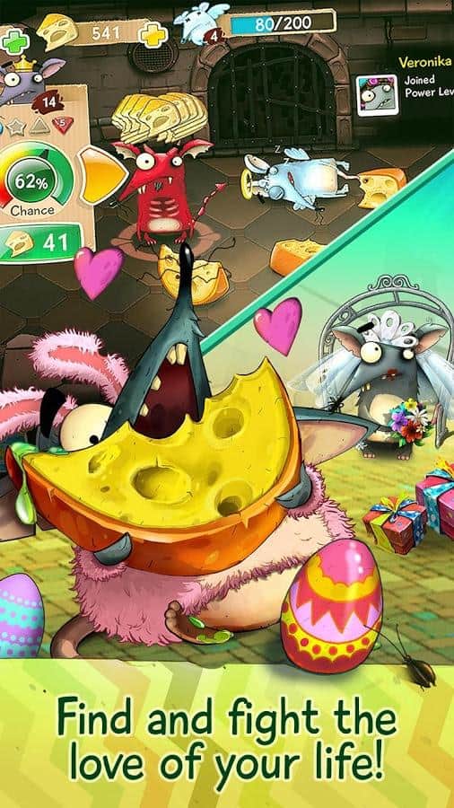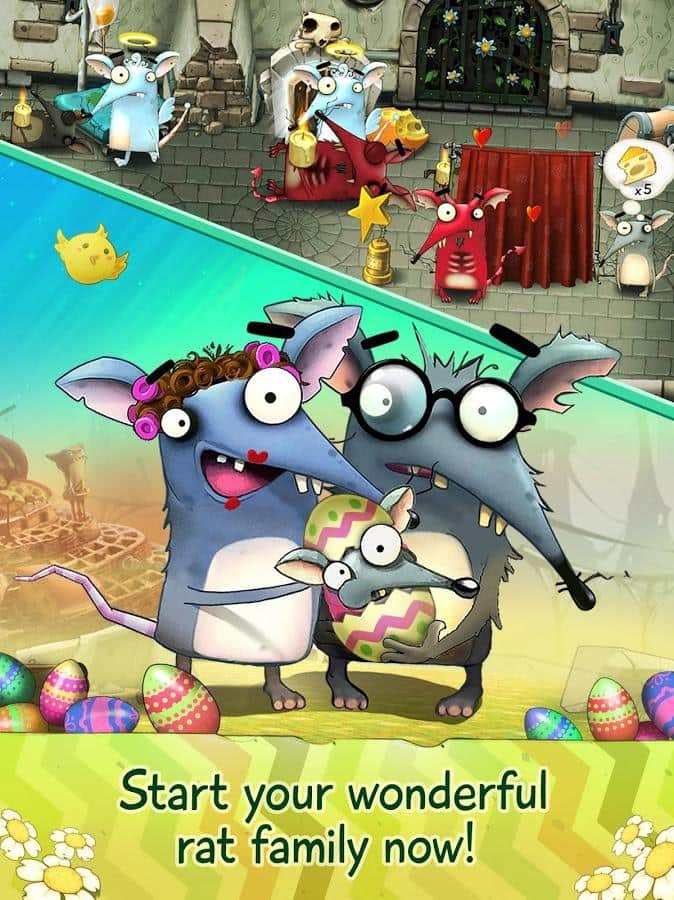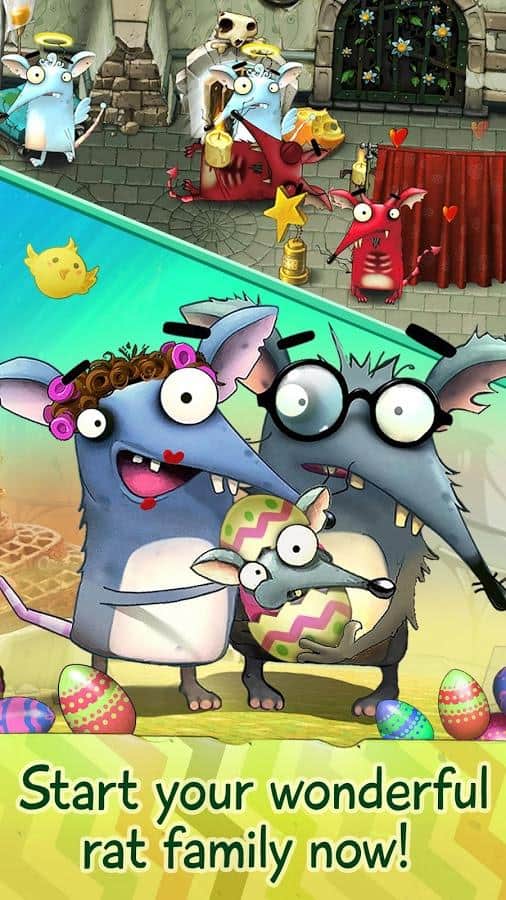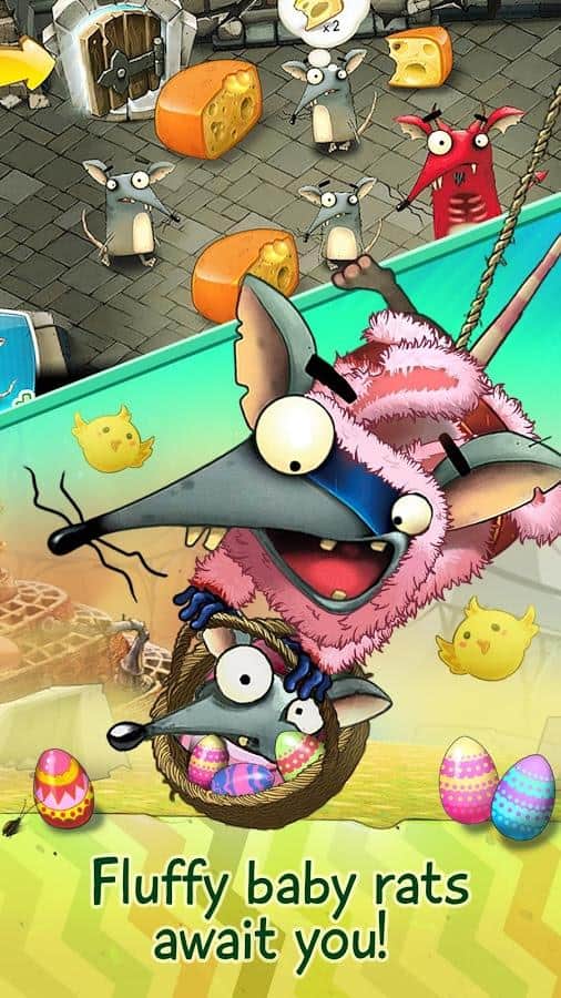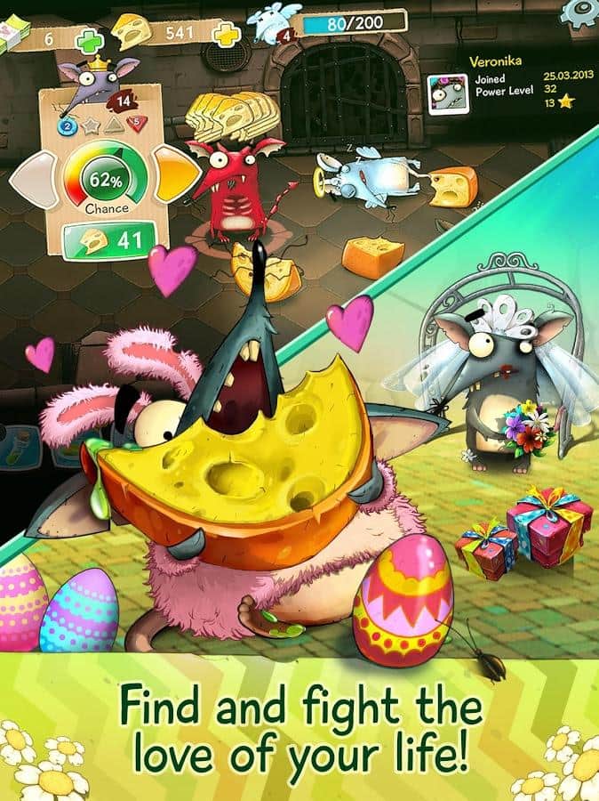 The Rats Online – увлекательная игра на андроид, в которую играют более 1500000 игроков по всему миру. Игра со смесью жанров экшен, стратегии и тамагочи в которой вам предстоит продвигать свою крысиную банду на вершину сырного рая. Игра для вас начнётся с того то вы будете управлять бандой маленьких крысят которых вы будете обучать как воровать сыр, сражаться с чужаками и вербовать новых членов команды. Начните свою игру прямо сейчас и создайте из своей банды крыс самую мощную и опасную бандитскую шайку в этой игре. В игре вас порадует уникальный ни на что не похожий игровой процесс.