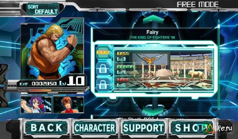 THE RHYTHM OF FIGHTERS - Великолепный файтинг на андроид от японского разработчика, компании SNK PLAYMORE. Игра выполнена в стиле игровых приставок, где нет места трехмерным уровням и персонажам, а есть только зрелищные бои. Все персонажи также взяты из приставочной версии игры, а звуковые дорожки собраны из лучших треков данной серии игры. Весь бой в игре сделан по принципу одного касания, так как невозможно было осуществить такое быстрое и точное нажатие на тачскрин.