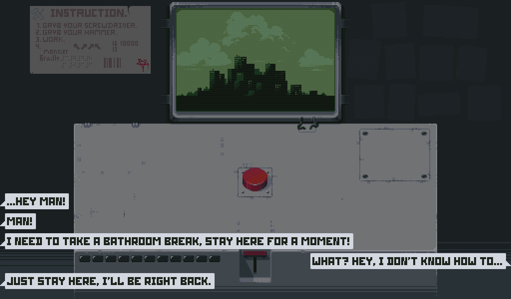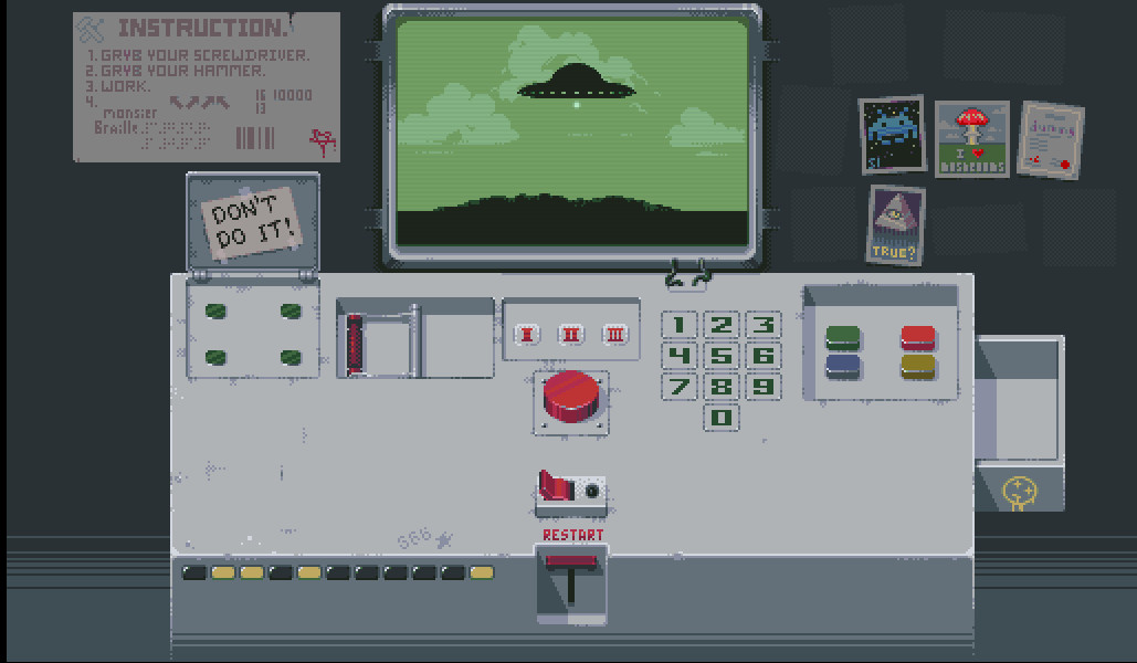 "The Second Thought" или "Please, Don't Touch Anything" - необычная криптографическая головоломка. В игре 11 концовок, и полностью пройти её можно только, если открыть каждую. За каждую найденную концовку вы получите что-то особенное. На Android из-за мелких кнопок удобнее играть на больших экранах или со стилусом. Приятной игры и не забудьте ознакомиться с инструкцией! Зажмите рычаг сброса, чтобы удалить сохраненный прогрес игры.