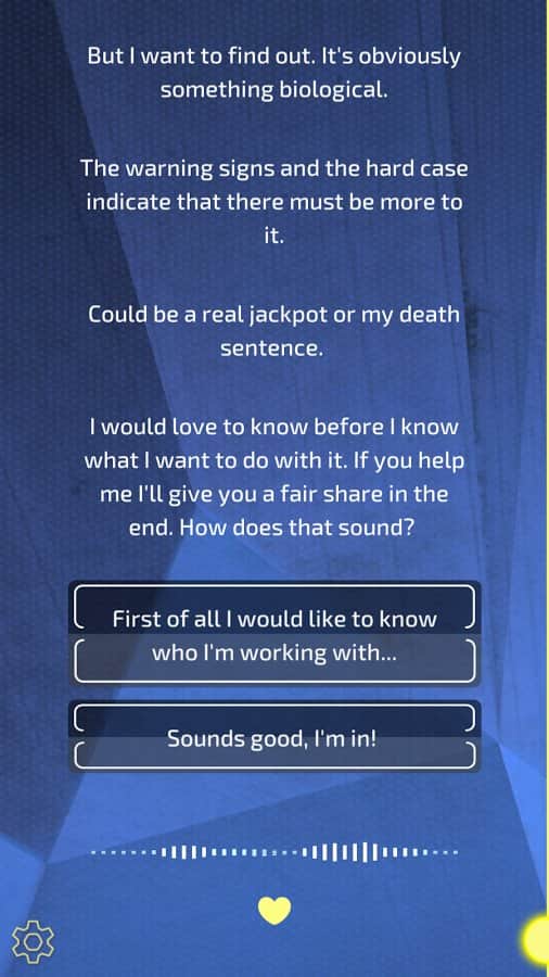 The Virus: Cry for Help – интерактивная игра на андроид, где вы будете помогать молодой девушке спастись в мире мертвых. Эта игра перенесет вас в далекое будущее, где опасный вирус захватил все города и превращает людей в ходячих мертвецов. В этой игре вы будете помогать девушке по имени Ханна, единственной выжившей в городе, избежать гибели и выбраться живой. Все что она может это общаться с вами путем push-уведомлений, которые будет приходить к вам на телефон или планшет в реальном времени. Отвечайте на поставленные вопросы и решайте судьбу девушки, даже незначительные промахи и неверные ответы могут привести к серьезным последствиям по ходу развязки сюжета. Эта игра порадует вас отличным сюжетом, который будет держать вас в напряжении до конца игры.