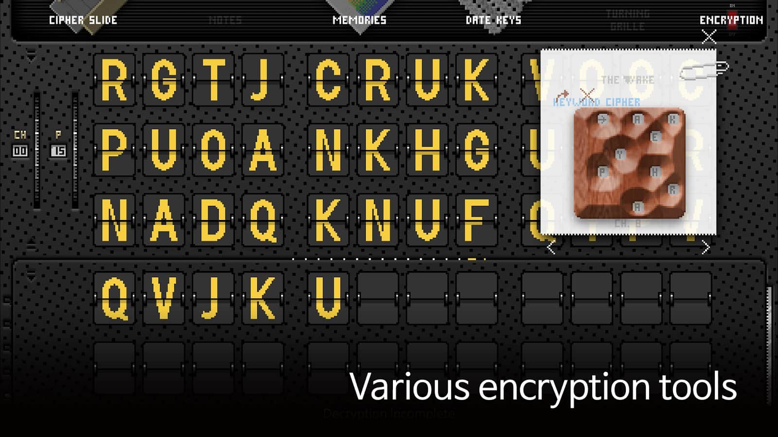 The Wake - разгадайте множество шифров, скрывающие написанные буквы и прочитайте интересную историю одного человека. Начните с банальных событий иногда в разном порядке: рождение, первый день рождения, путешествие, точка перегиба, происхождение, похороны, брак, начало школы, приключение семьи. Просматривайте множество фотографий, которые детально описывают эмоции в те моменты. Сюжет разворачивается вокруг странного проклятия трех поколений, уничтожившее людей и их шансы на прекрасную жизнь. Что кроется за разгадкой?