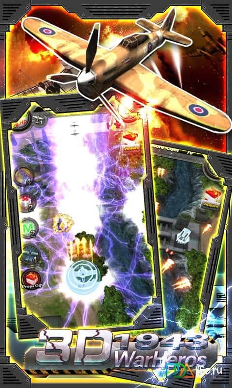 The War Heroes 1943-3D - в этой игре вы станете героем времен Второй Мировой войны, в которой вы будет управлять боевым самолетом. Стреляйте с помощью мощного оружия по врагам, применяйте защитный шит и сбрасывайте бомбы на стратегические объекты соперника. Игра порадует вас яркими звуковыми эффектами и возможностью управлять своим самолетом с помощью одного прикосновения. Выбирайте один из двух режимов и играйте с другими игроками со всего мира.