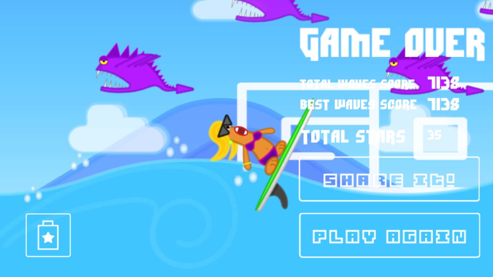 The Wave Surf Tap Adventure – веселая игра на андроид, где вы будете помогать серфингисту, мчатся вперед по волнам. Эта игра перенесет вас в атмосферу бескрайнего лета, где вы будете управлять забавным серфингистом. Касайтесь своего экрана в нужный момент для того чтобы герой совершал прыжки обходя многочисленных медуз, морских звезд и другие преграды на пути. Внимательно следите за дорогой и собирайте по пути своего следования многочисленные монетки и бонусы, которые помогут вам без труда обходить преграды. По ходу игры накапливайте монетки и тратьте их на покупку нового серфинга и открытие забавных героев.