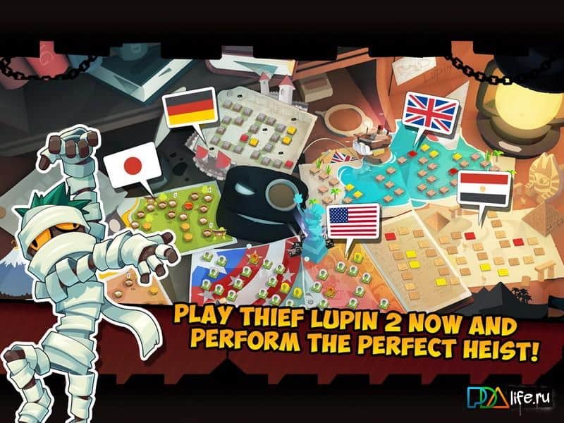 Thief Lupin 2 - продолжение увлекательной игры про вора Люпина, который стал самым знаменитым и величайшим вором всех времен и народов. Играйте за Люпина или других воров из этой игры и разгадывайте сложные головоломки, открыв которые вы сможет украсть самые ценные артефакты из замка Дракулы и пирамид Египта. Бросьте вызов вампирам, гигантским рыбам и другим монстрам и приложите все свое логическое мышление для того чтобы разгадать сложные задачи и при этом не попасть в лапы врагов.