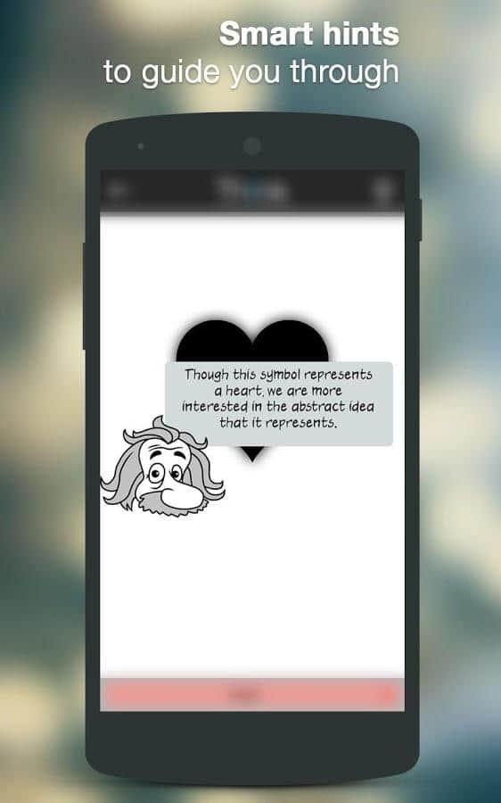 Добро пожаловать в мир минимализма, где после прохождения вы почувствуете себя гением мышления. 30 глав (360 сложных головоломок), возможные подсказки, восхитительные диалоги, эффектные визуализации, сопровождающая музыка, проверка на логику и прочие действия. Вам предстоит увидеть много картинок, которые обозначают слова на английском языке (как раз и выучить можно). Но чем больше уровень - тем сложнее догадаться. Изображения будут с разными действиями, возможно даже не связанных между собой. Сможете ли вы пройти игру до конца и не сдаться?