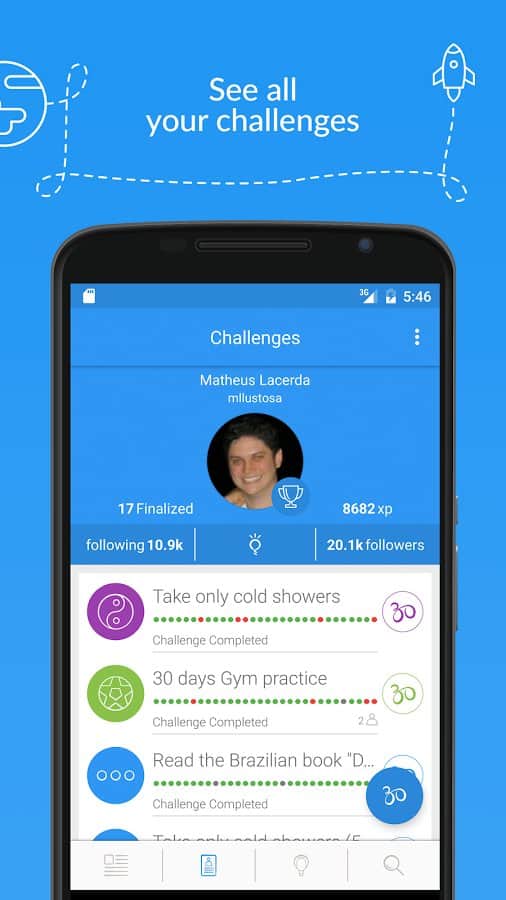 Thirty - Get Inspired - Весьма необычное приложение которое носит в себе соревновательный характер, или же просто улучшение самоконтроля. Оно не зря имеет название тридцать, его суть состоит в том что бы 30 дней придерживаться определенных правил или же привычек, заданных заранее и расписанных чуть ли не по часам. Некоторые могут использовать его для того что бы спорить и соревноваться с друзьями, другие же могут задать свой стиль жизни и попытаться придерживаться его в течении 30 дней.
