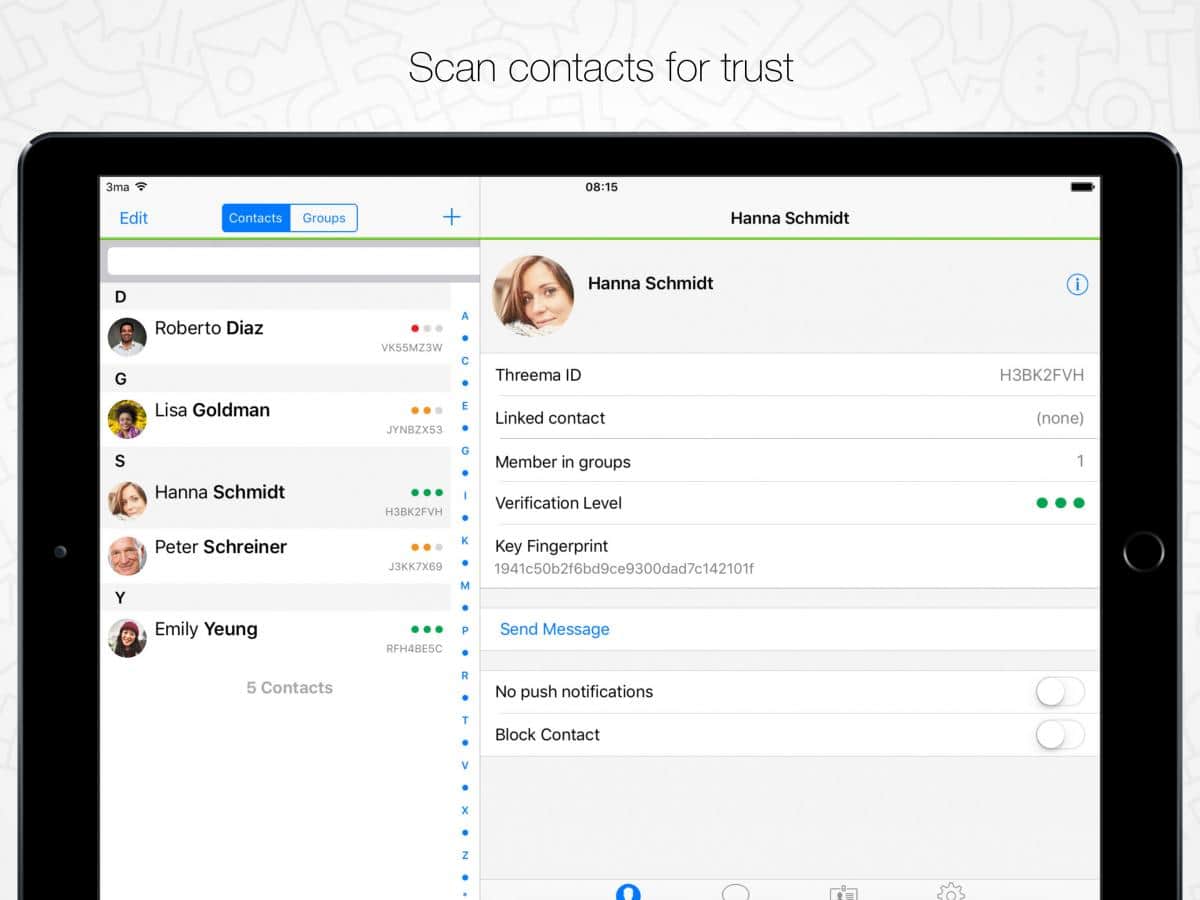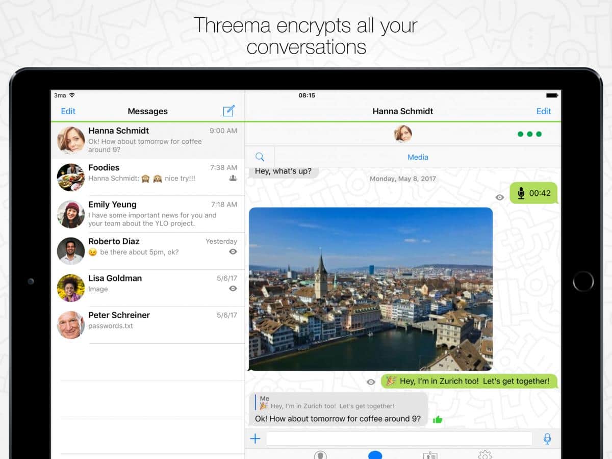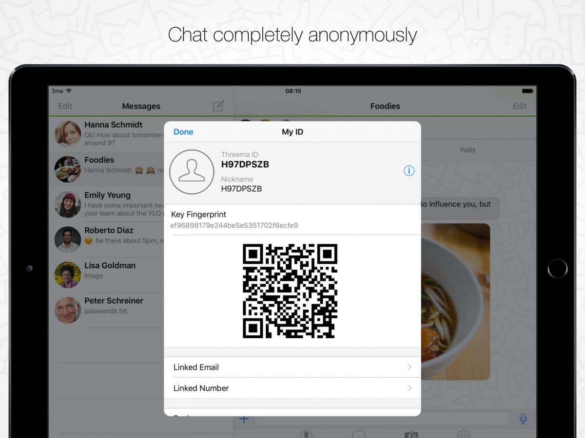 Threema - Хотите сохранить анонимность во всем что касается ваших личных данных и переписок. Тогда вам просто нужно установить этот великолепный мессенджер в котором все переписки полностью анонимны и никогда никто не сможет их прочесть кроме вас. К тому же все данные надежно зашифрованы для того что бы злоумышленники не смогли получить доступ к ним.