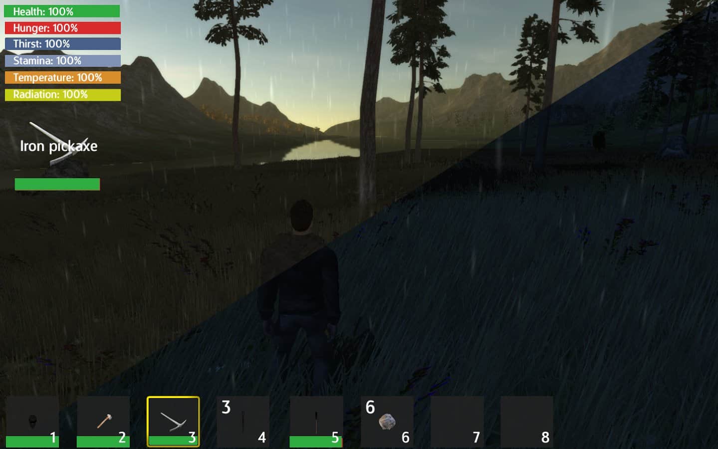 Ещё добавлю: игра русифицирована далеко не полностью. Бегал-бегал, собирал ресурсы, а для компаса так ничего и не собрал. Это печально и скучно... Есть баги, например наложение текстур хищников на персонажа. Игра часто вылетает и не всегда сохраняется. Пользовательского сохранения я не нашёл.