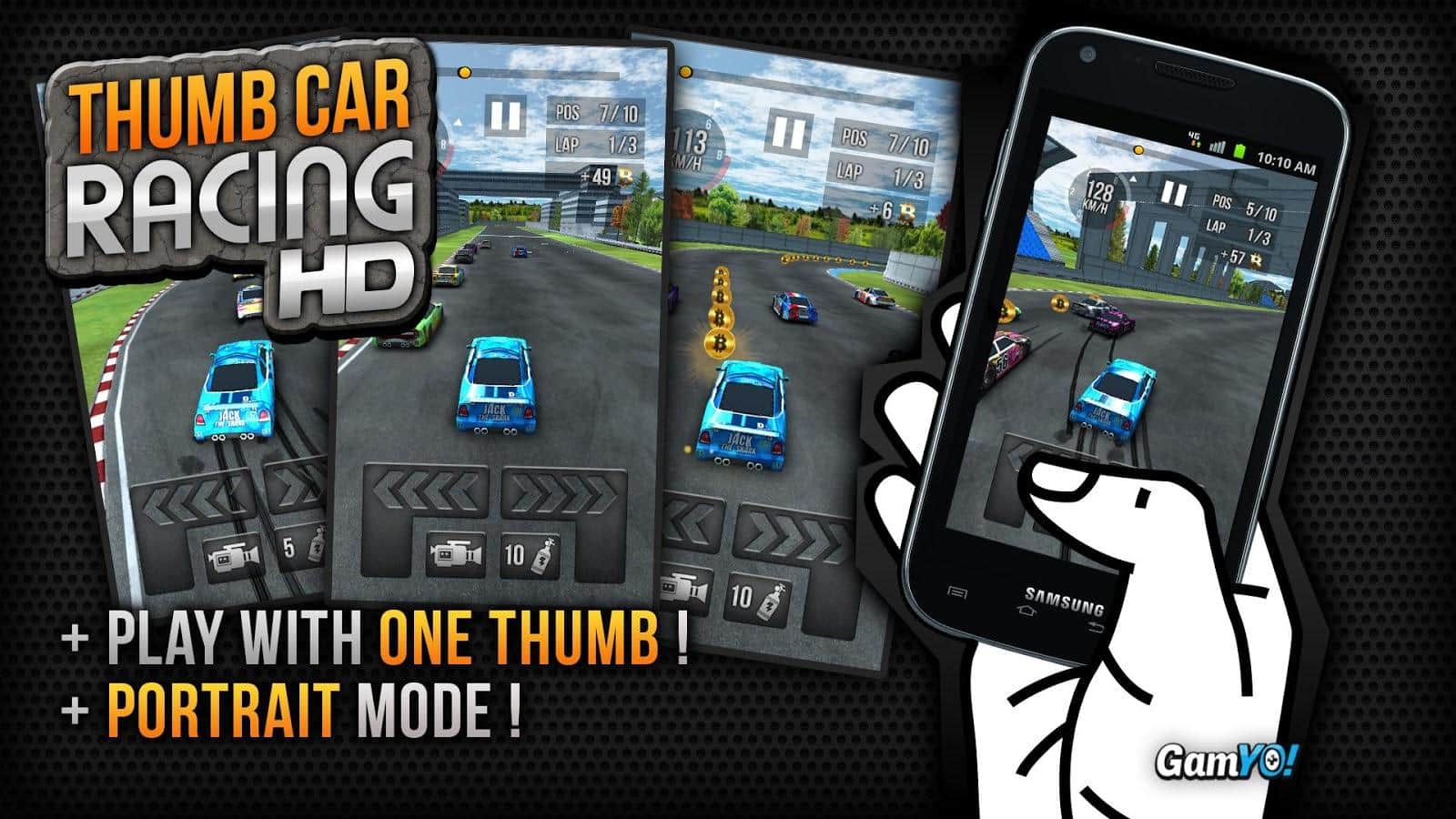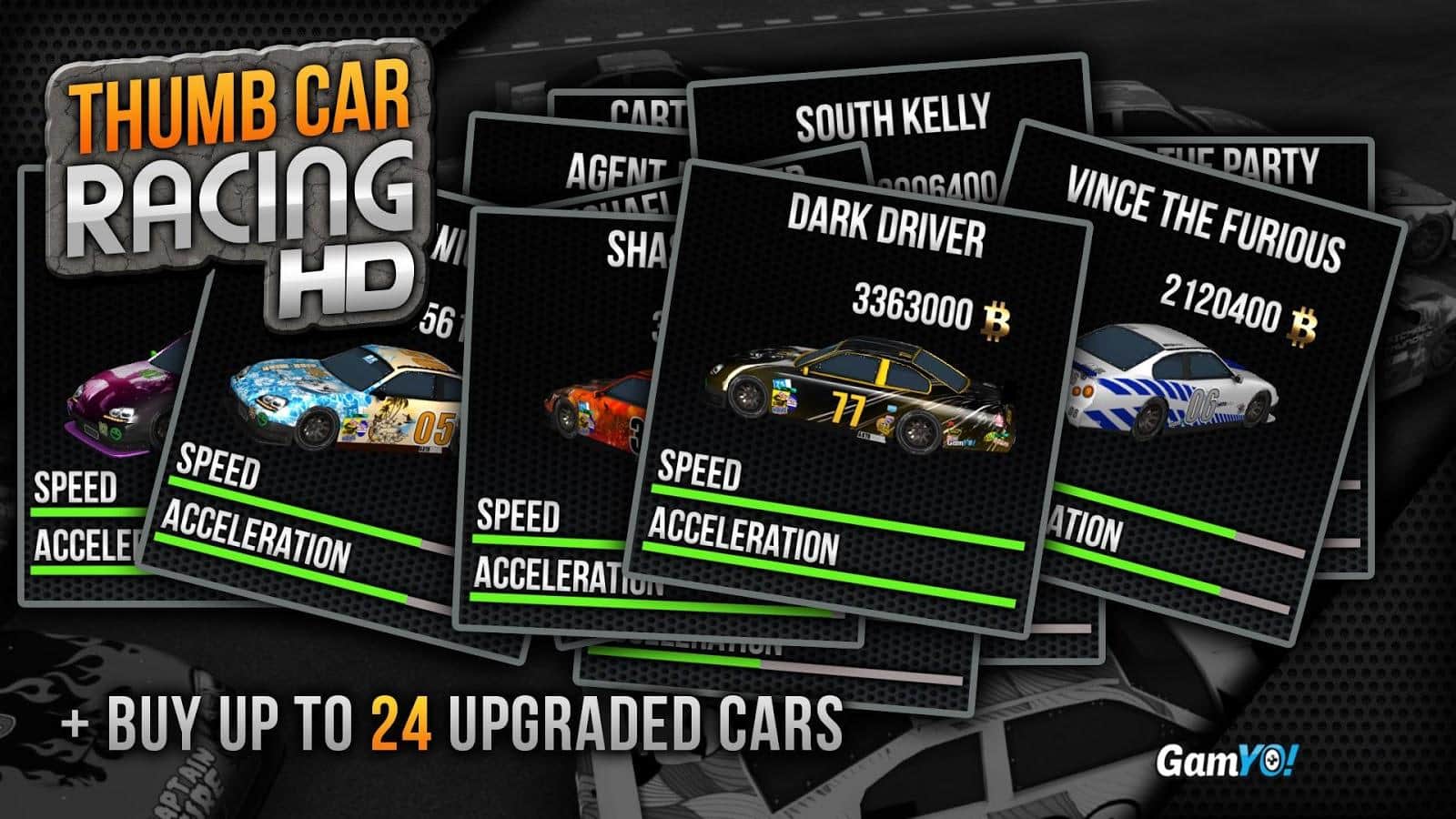 Thumb Car Racing - интересные гонки с хорошей графикой и простым управлением. В игре вас ожидает более 120 трасс и 40 автомобилей, 9 противников которых предстоит обогнать. Рёв моторов и запах палёной резины разносится по всему треку. Докажите всем, что вы лучший гонщик.