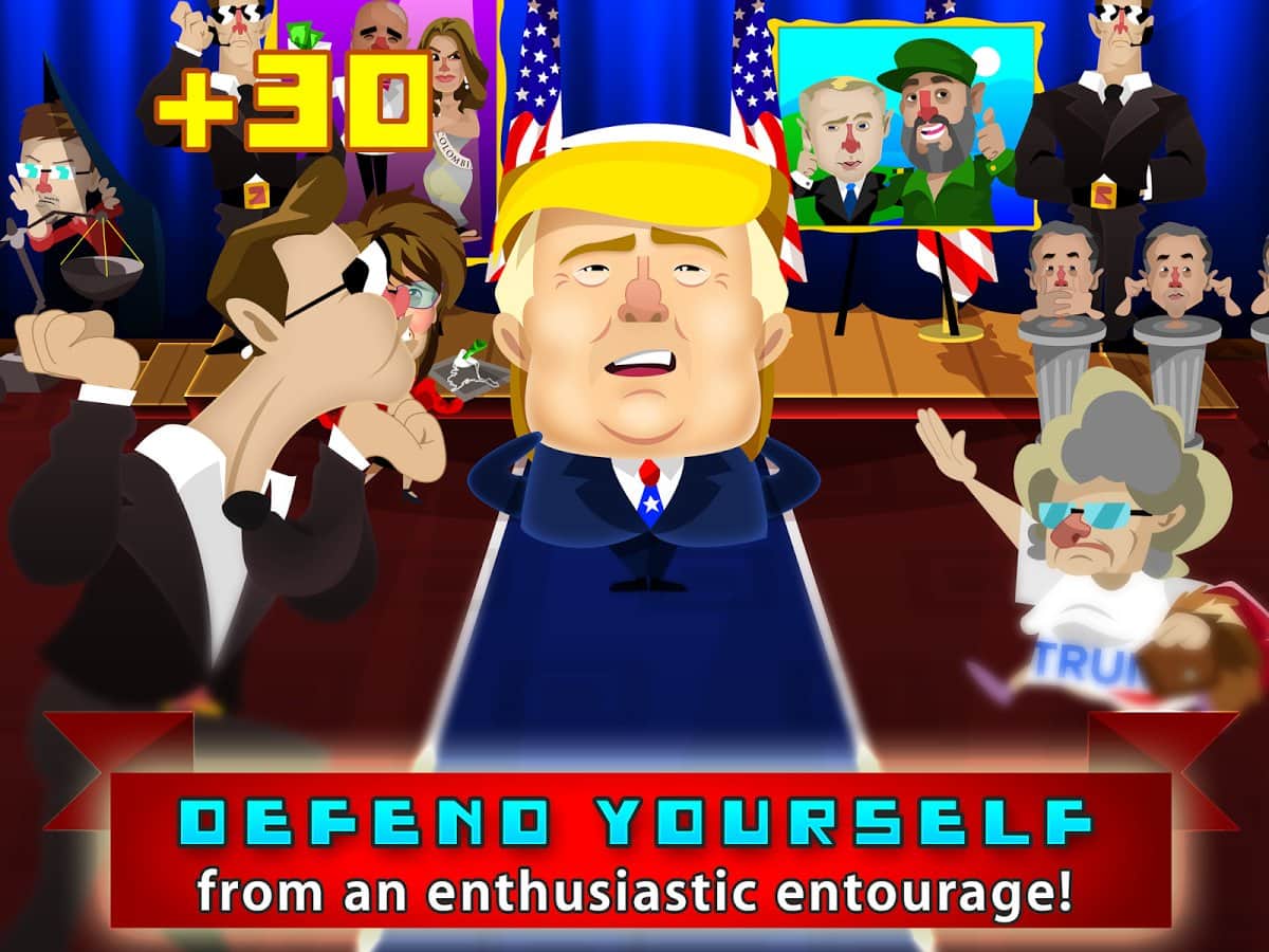 Thump Trump – игра про эпатажного претендента на должность президента США Дональда Трампа. Участвуем в дебатах, бьём соперников и делаем всё возможное, для того, чтобы стать ближе к президентскому креслу. Игра является очень весёлой и красочной аркадой которая обязательно порадует своим юмором каждого геймера, а известная личность Дональда Трампа только прибавит интереса к происходящему на экране. Помимо отличной картинки в игре, весёлый саундрек который поможет ещё более сильно погрузится в происходящий весёлый хаос. Приятной игры!