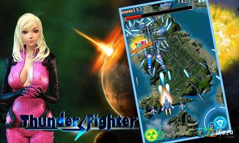 Thunder Fighter:Storm Raiden - Игра порадует вас отличной 3D графикой, где вся игровая военная техника максимально приближена к боевым оригиналам периода Второй мировой войны. Эта часть игры состоит из 5 уровней с 3 видами сложности и в ней примут участие 78 видов техники противника, а в помощь вам будут даны 4 самолёта союзников времен ВОВ. Эта игра полна интересными и насыщенными событиями: стратегические задания и тайное оружие противника, дружба, взаимовыручка и конечно же любовь! Одна из особенностей игры - это высокий интеллект противника и огромный выбор элементов прокачки самолёта самого героя.