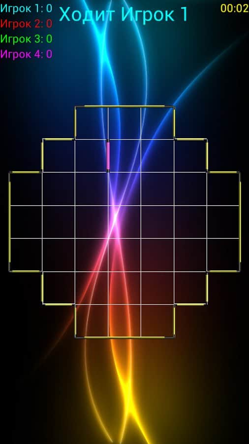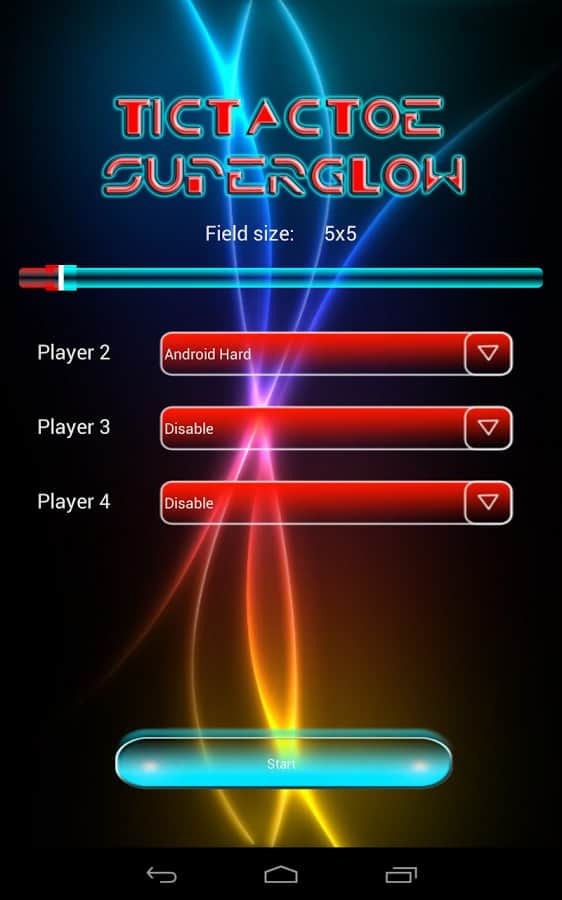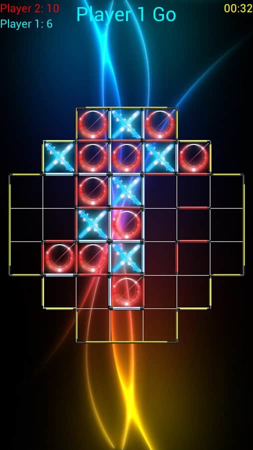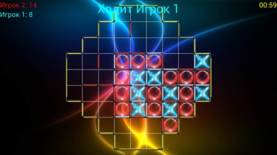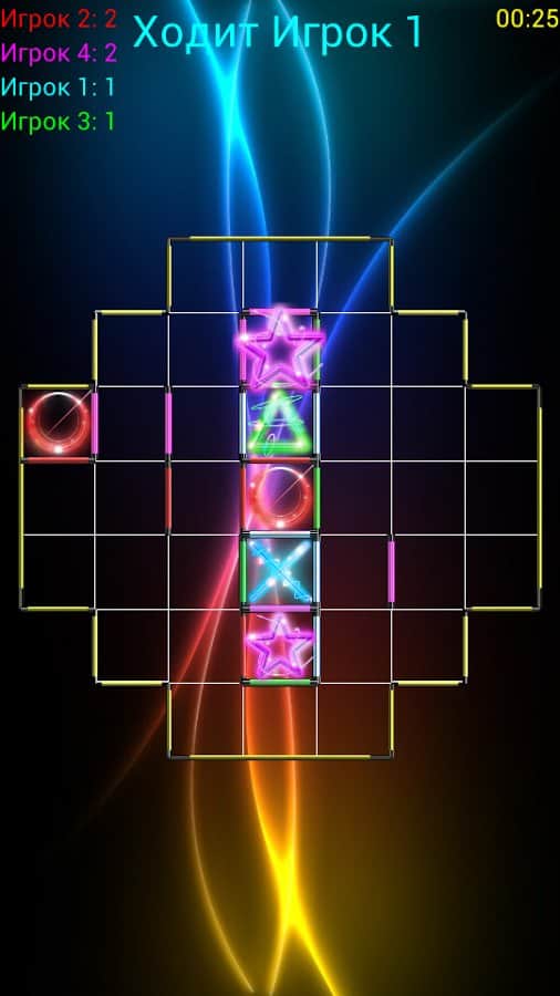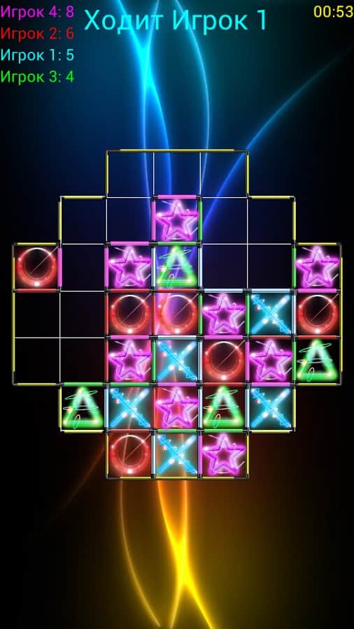 TicTacToe Super Glow - игра на андроид, отдаленно напоминающая знаменитую игру крестики-нолики. В игре могут одновременно участвовать до 4 игроков. Принцип игры заключается в следующем, поле состоит из нескольких квадратов (их количество вы можете менять) каждый игрок делает по одному ходу, в котором необходимо занять одну сторону квадрата. Если вы по ходу игры занимаете все четыре стороны квадрата, то вы выиграли. У вас будет возможность сразится с друзьями или с компьютером, а также менять количество игроков и уровень сложности.