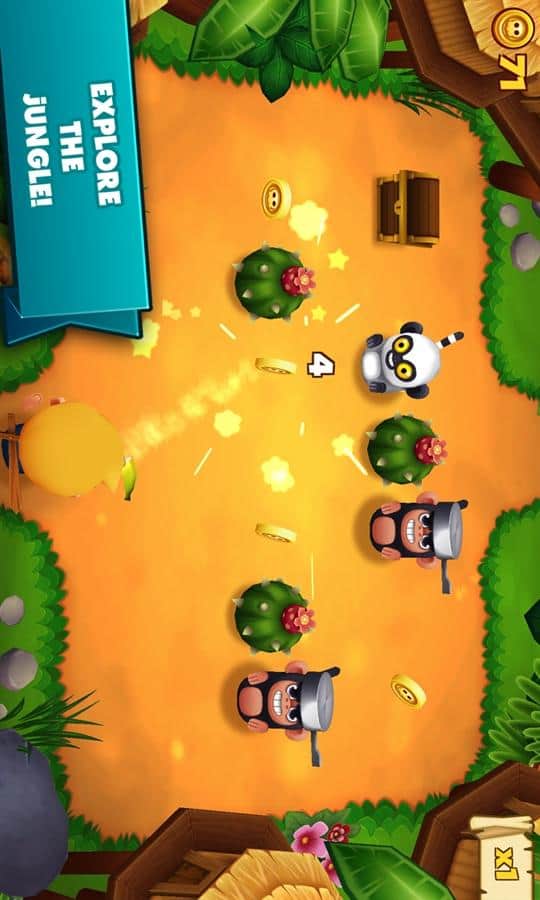 Tiki Monkeys - аркада с элементами стратегии, в которой вы отправитесь на поиски сокровищ. Вы будете играть за пиратов, у которых вредные обезьянки украли все их сокровища, отправляйтесь в опасные джунгли и верните обратно свое золото. Выберите полюбившегося пирата из большого разнообразия, а также разработайте свою стратегию и отбивайтесь от летящих в вас бананов и кокосов. Проделывайте комбо удары, собирайте награды и соревнуйтесь со своими друзьями с Facebook. Веселая игра, которая порадует не только детей но и взрослых.