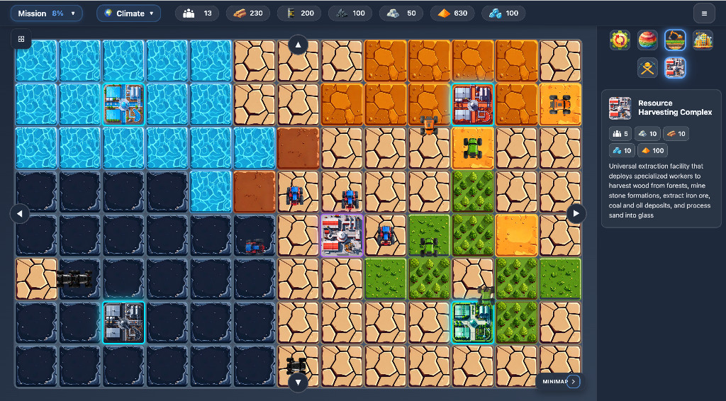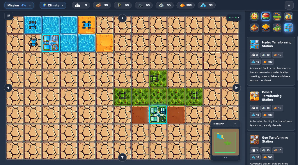 Tilecraft — это стратегический симулятор терраформирования, в котором вы превращаете безжизненные планеты в процветающие цивилизации. Управляйте ресурсами, стройте города, создавайте инфраструктуру и наблюдайте, как мертвые миры обретают жизнь. Автоматизируйте процессы, запускайте ракеты и осваивайте новые планетарные системы, шаг за шагом преображая галактику.
