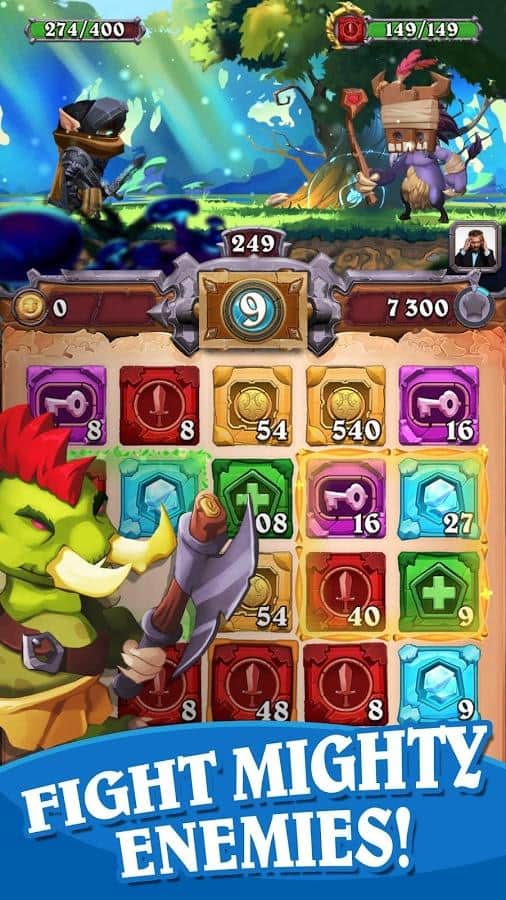 Tiles & Tales – увлекательная головоломка на андроид из жанра три в ряд. В этой игре вы возьмете под свой контроль отважную героиню Лилли и поможете ей в одиночку победить всех врагов, нападающих на ее королевство. Ведите свою героиню вперед по красивым и живописным локациям игры и составляйте по три и более одинаковые плитки в ряд для того чтобы Лилли наносила удары по врагам. Проведите свою героиню как можно дальше в этой игре и сразитесь со всеми врагами, объединяя как можно больше плиток в ряд. Лилли обладает различными атаками и способностями, которые позволят ей сразиться с разнообразными по силе врагами. Соревнуйтесь со своими друзьями за лучший результат в этой игре и помогайте им в боях.