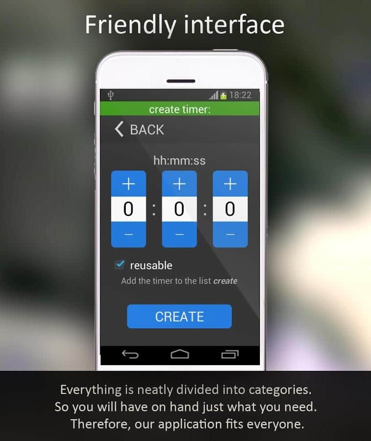 Time Pro – простой и удобный таймер времени для андроид от разработчика Dream Art, основными особенностями которого являются функциональность, ненавязчивость и продуманность интерфейса. Стоит отметить, что все функции разделены на категории с возможностью доступа к ним в одно нажатие. Если говорить о самих таймерах, то здесь вы можете одновременно запустить их большое количество, а так же сохранить для дальнейшего использования. Time Pro будет незаменим в занятиях спортом и оценен по достоинству всеми, кто попробует его в работе.