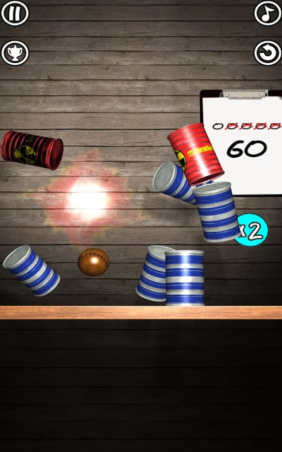 Tin Shot - эта игра попала в разряд спортивных игр для андроид не случайно. Ведь здесь нужна сноровка, внимание, концентрация и воля к победе, и чуть не забыли - терпение....Итак, бросаем мячик по мишеням, в роли которых выступают банки, деревянные фигуры и пр. 3 режима игры, возможность игры с друзьями, летающие мишени и ваша изобретательность в бросках подарит немало веселых минут! Игра для всех возрастов - от мала до велика!