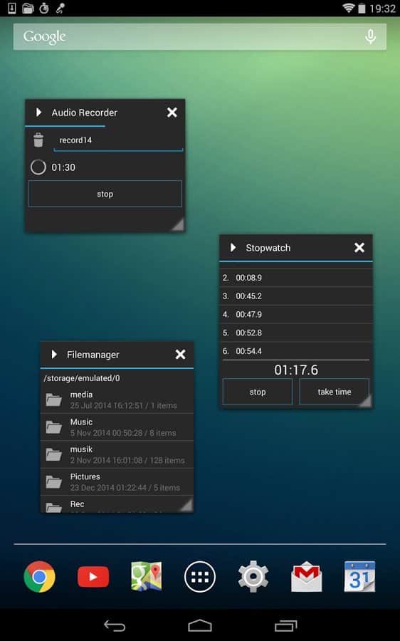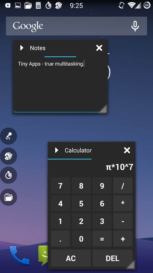 Tiny Apps (floating) - Отличное приложение с кучей возможностей. Это не просто приложение, оно содержит в себе 18 других приложений, таких как: заметки, аудио-записи, paint, секундомер, информация о системе, мониторинг сети и многое другое. Так же вы можете настроить по своему усмотрению, и сделать так что бы все отображалось по верх других окон. Это очень полезная функция, которая поможет вам узнать, все данные о своем устройстве. Теперь самые нужные приложения всегда под рукой! Просто вынесите то что вам нужно, на рабочий стол, задайте прозрачность и размер окон. А потом выбирайте любое из них всего в один тап по экрану. Вам больше не нужно ставить все приложения отдельно, данная сборка, содержит в себе всё что вам нужно.