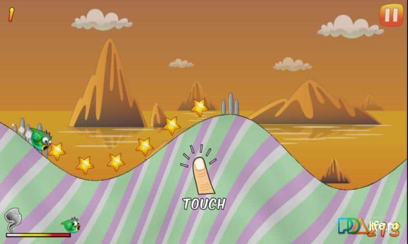 Tiny Bird - игра на аndroid, в которой вы будете помогать маленькой птичке улетать от шторма. Крошечная птичка жила на юге своей радостной жизнью до того момента пока не пришла страшная буря. Помогите ей избежать ее. Скользите по облакам и преодолевайте крутые холмы с легким управлением в одно прикосновение пальца. Много веселых уровней в этой игре на долго привлекут ваше внимание и вы проведете много времени прыгая по холмам.