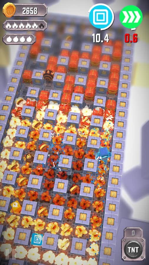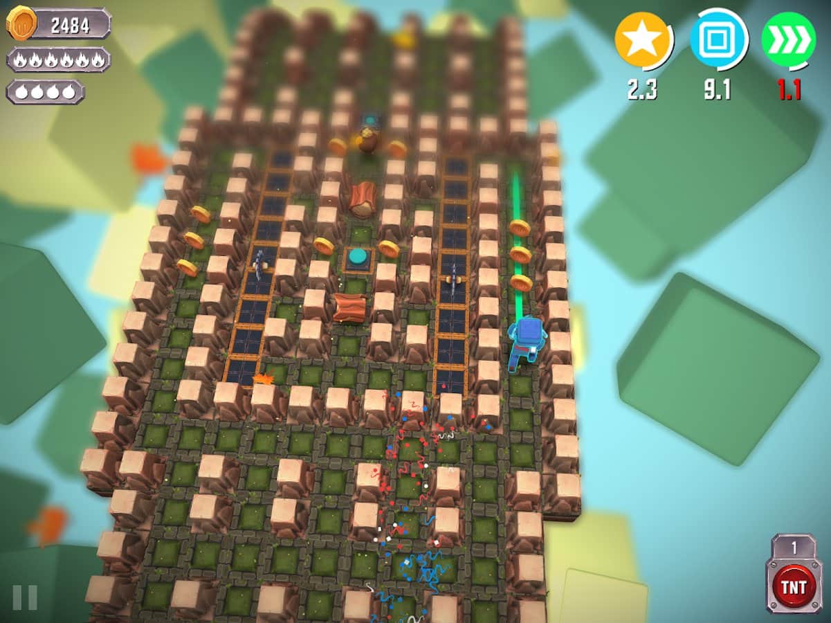 Tiny Bombers – красочная аркада на андроид, где вы должны провести своего персонажа сквозь опасные лабиринты. Лабиринты, которые вам предстоит проходить полны ловушек, бомб и монет, двигайтесь вперед как можно быстрее и тренируйте свою отличную реакцию и скорость пальцев. Мир разрушается позади вас и вам предстоит пройти все испытания и не погубить своего героя. Расставляйте бомбы с умом и сами не подорвитесь на них. Получайте бонусы, которые увеличат взрывную волну, наделят вас броней и увеличат скорость. В игре представлено 20 различных персонажей, каждый из которых обладает своим уникальным дизайном.