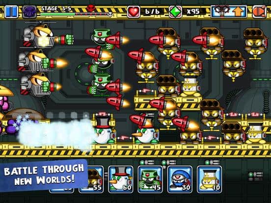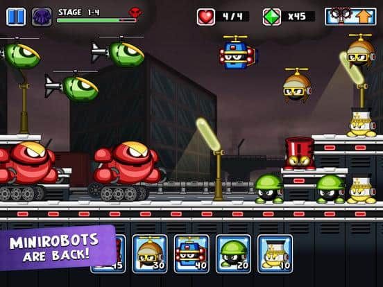Tiny Defense 2 – продолжение увлекательного экшена для IOS, где вы примите свое участие в войне машин и минироботов. Армия машин опят наступает на ваши позиции и вам не чего не остается как дать им отпор. Управляйте минироботами которых в этой игре представлено более 40 и уничтожайте машины применяя различное оружие и способности роботов. Путешествуйте по пяти неповторимым мирам и ведите бой с противником. Применяйте разнообразные улучшения и апгрейдите своих роботов. Вас ждет множество различных уровней и 20 невероятных мини-игры. Спасите мир от машин и уничтожьте всех противников.