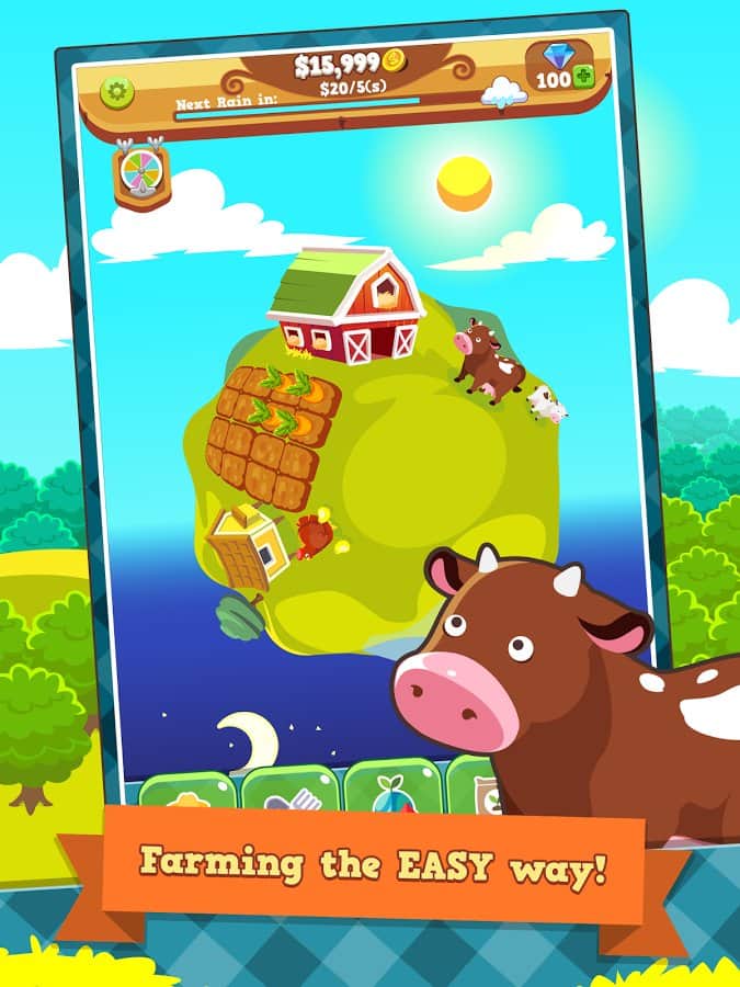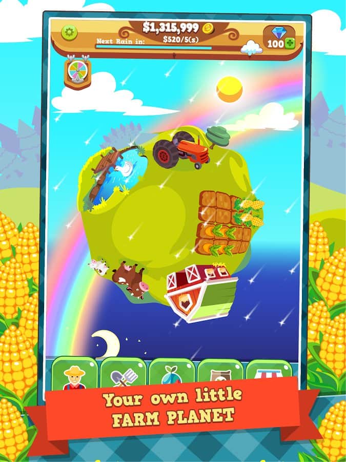 Tiny Farm Planet – игра на андроид, в которой вы сможете стать фермером и проверить свои силы в этом нелегком деле. В качестве фермы в этой игре будет выступать целая планета, засеивайте ее различными культурами, сажайте деревья и выращивайте домашних животных. Сделайте свою ферму самым прибыльным делом всей своей жизни и получайте несказанный доход от продажи овощей, фруктов и животных. Нанимайте ценных работников, которые будут помогать вам вести фермерское хозяйство. Получайте в качестве награды за отличный урожай различные улучшения и бонусы и выполняйте многочисленные задания, предложенные вам игрой.