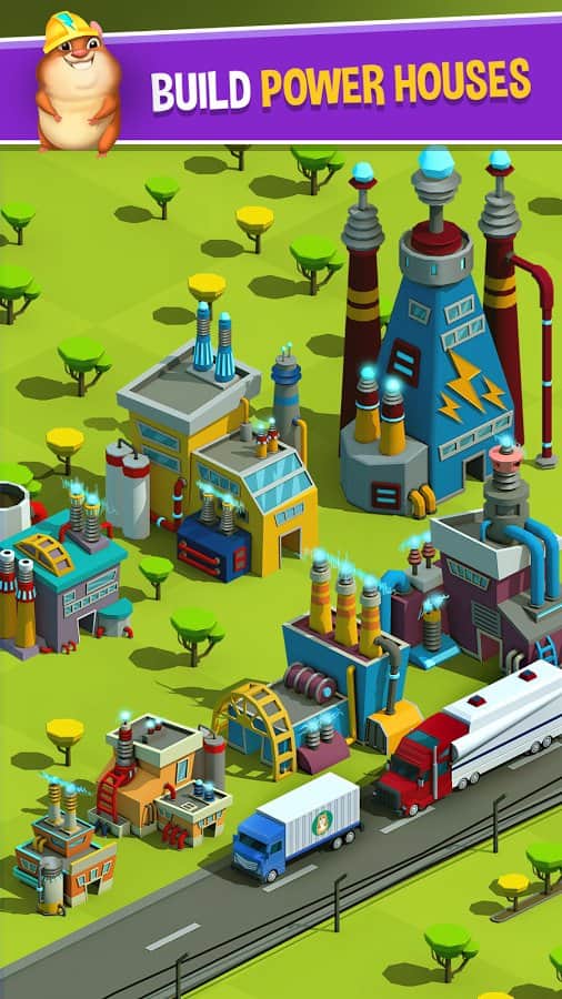 Tiny Hamsters - Idle Clicker – кликер на андроид, где вы будете управлять хомяками. В этой игре вы возьмете под свой контроль электростанцию и будете вырабатывать энергию за счет хомяков, которые крутят колеса генераторов. Продавайте вырабатываемую энергию городу и получайте огромные деньги. Проложите свой путь к успеху и создавайте новые предприятия и лаборатории по клонированию хомяков. Создайте целую армию хомяков, которые будут работать на вас и заставляйте их крутить колеса генераторов. Изучайте новые технологии и получайте награды и бонусы. Кликайте по экрану телефона и запускайте в работу огромные генераторы.