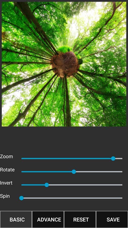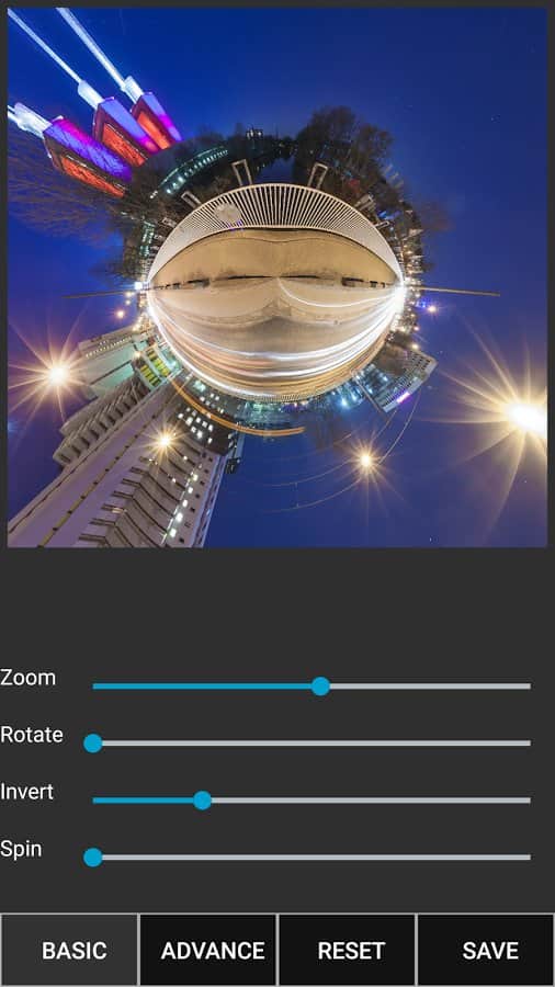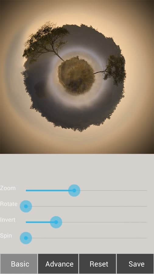 Tiny Planet FX Pro - Многие из нас видели как люди создают фотографии в необычном виде, и выглядят они как маленькие планеты! Теперь и у вас будет возможность создавать столь необычные но очень прикольные фотографии. Сделать это довольно просто, все что вам нужно это одно простое приложение, которое автоматически создаст из вашей фотографии такое необычное явление. Здесь очень простой интерфейс и все максимально автоматизировано, так что все что нужно сделать это выбрать фотографию.