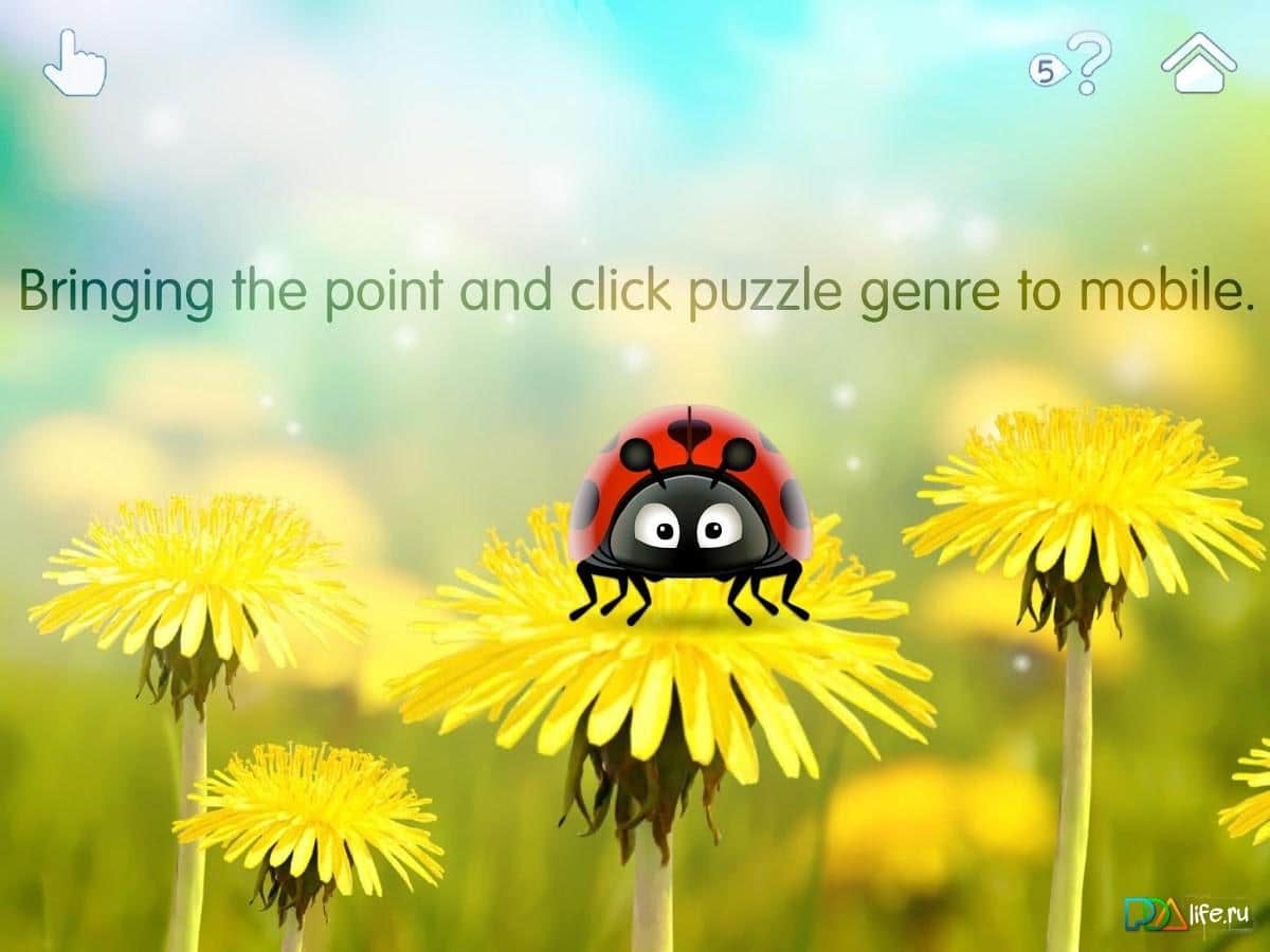 Tiny Story - игра на андроид, в которой вы будете помогать влюбленной божьей коровке, произвести впечатление на свою возлюбленную. А для этого вам необходимо побывать в новых местах, найти новых друзей которые помогут вам разгадать сложные загадки и головоломки и все ради того чтобы принести яблоко. Если вы застряли и не знаете выхода, то вам на помощь придут подсказки, которые есть на каждом уровне.