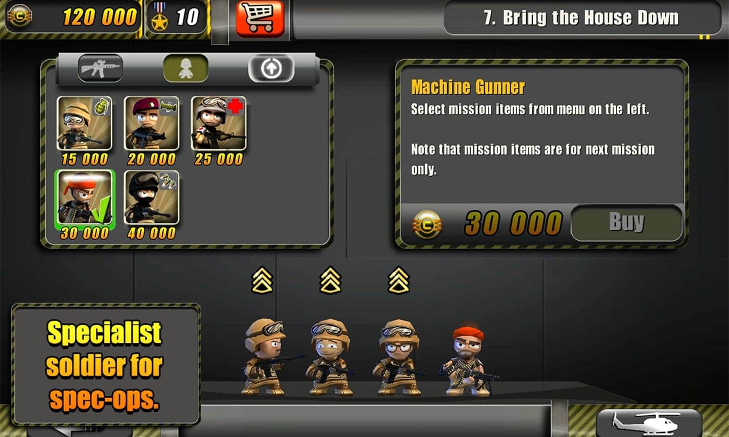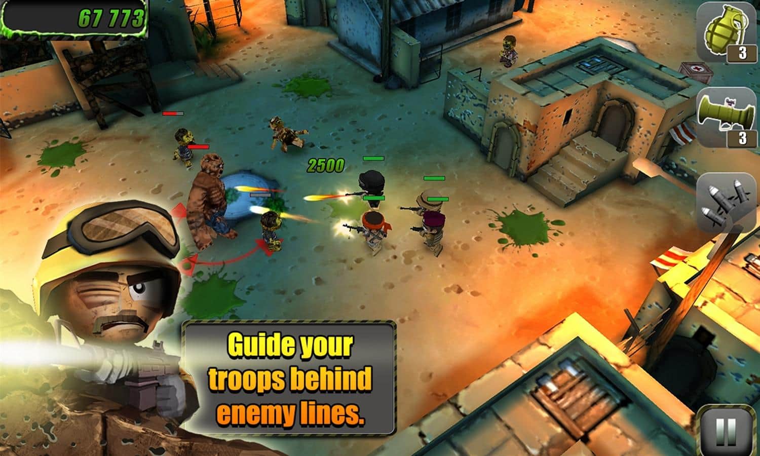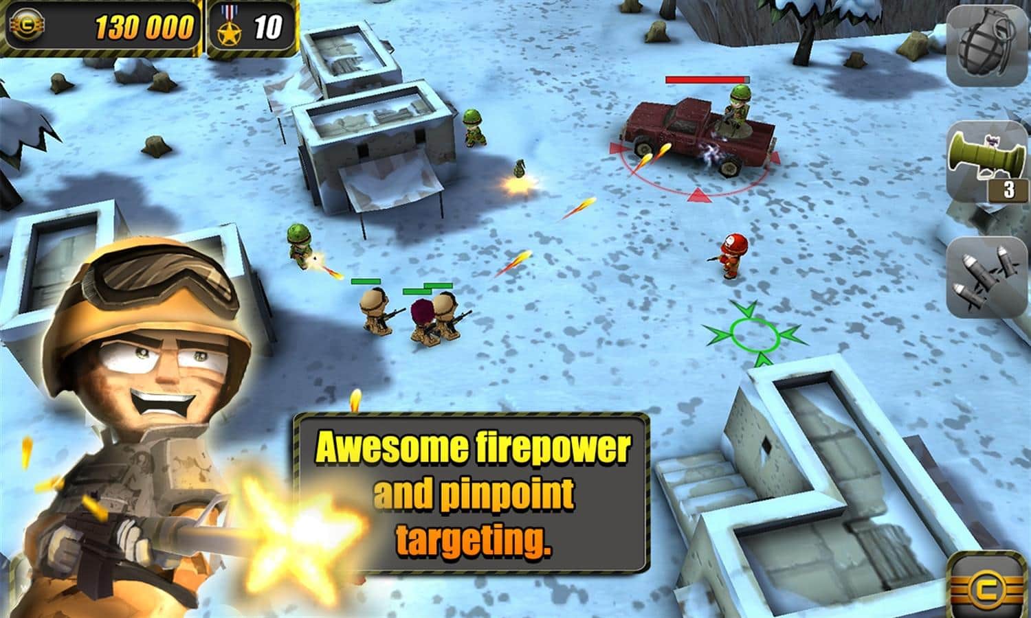Tiny Troopers - увлекательная стратегия для windows phone, в которой вам предстоит участвовать в опасной войне. Управляйте тремя маленькими солдатами, сражайтесь с врагами и проходите все эпические миссии, которые лягут на ваши плечи. Вашей задачей будет управлять высококвалифицированными военными и выполнять всевозможные миссии, которые включают в себя уничтожение врага, взрыв зданий и сопровождение журналистов в самые горячие точки для ведения репортажей. Выполняйте более 30 миссий, которые разделены на три главы и улучшайте ваших героев, снаряжая их мощным оружием и получая новые награды и звания. В этой игре вас ждет легкое управление, отличные визуальные эффекты и качественный юмор создателей этой игры.