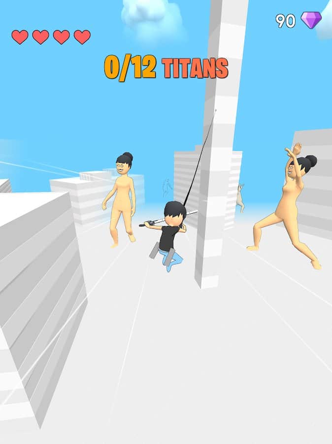 Titans 3D - Маленькие люди хоть и кажутся слабыми, но это не так. Опровергните эту теорию и сразитесь с могущественными титанами, которые больше вас в несколько раз! Не дайте им возможности захватить мир и уничтожить ваши края, иначе зачем все это строилось и создавалось? Проходите сложные уровни с 4 сердцами и старайтесь не попадаться под удары гигантов, а самим их атаковать с удачных мест. Для этого у вас есть все необходимое: меч, веревка с сцеплением для перемещения по высоте. Постройте для местных жителей защищенный город и вместе справляйтесь с катастрофой!